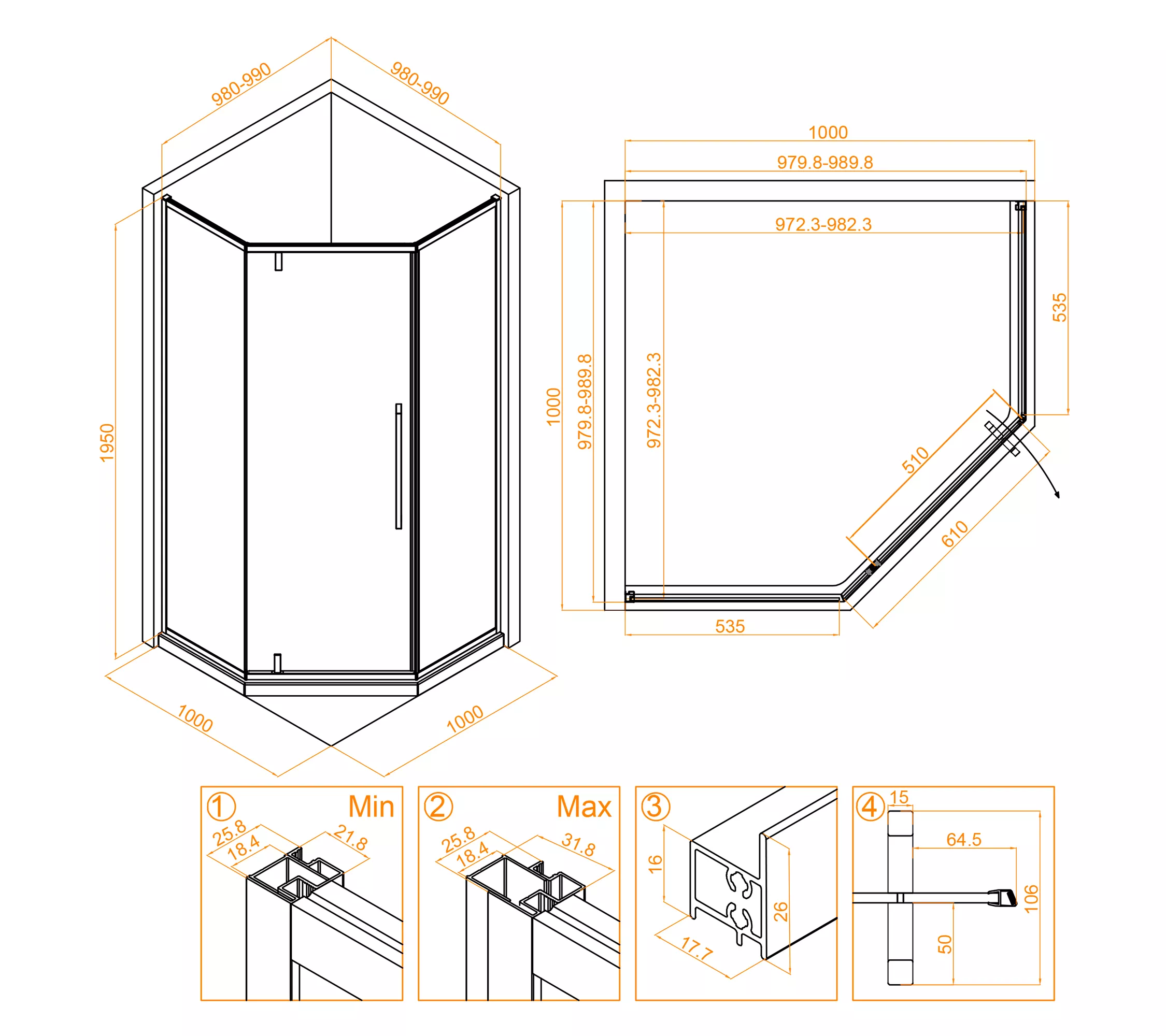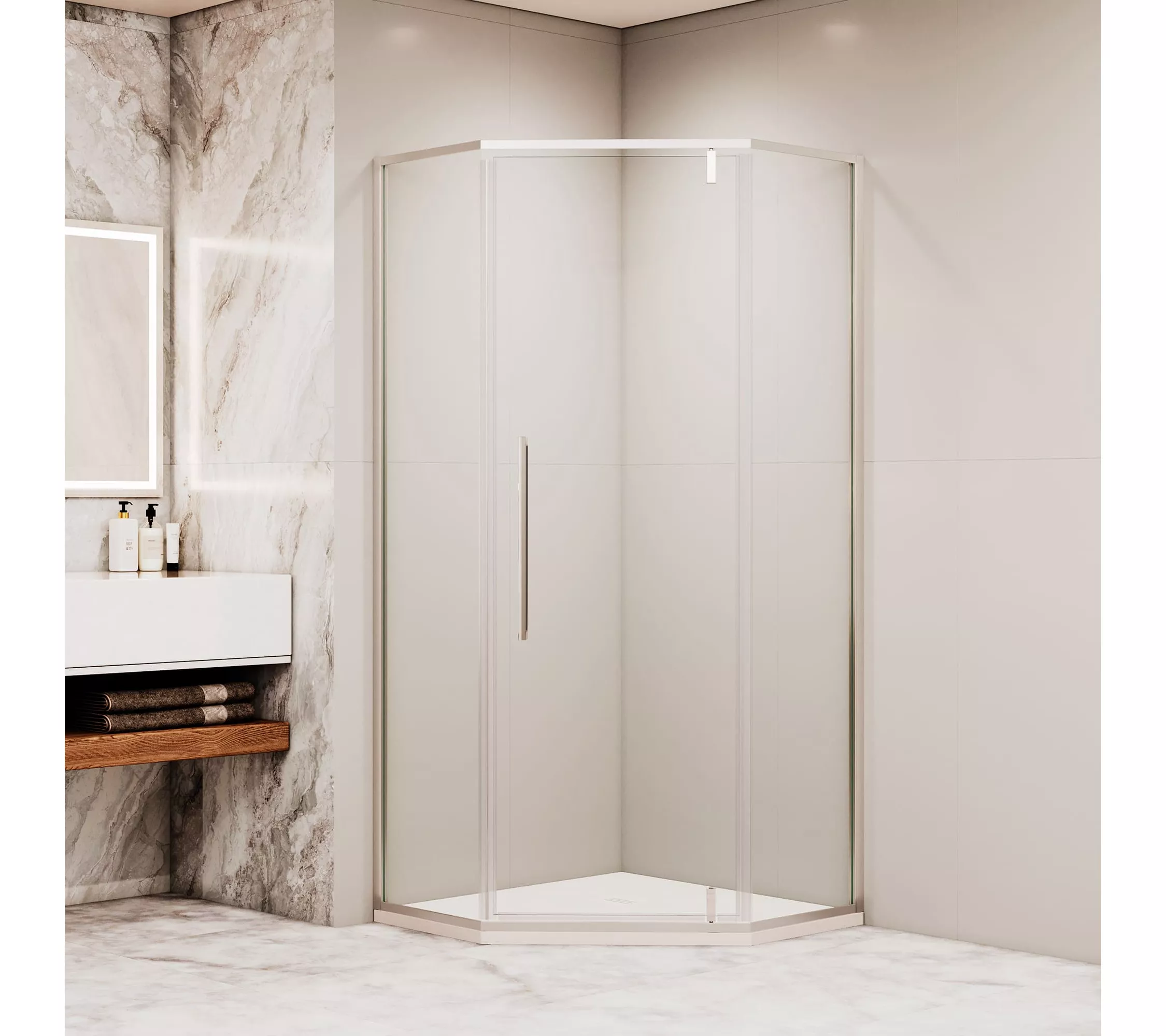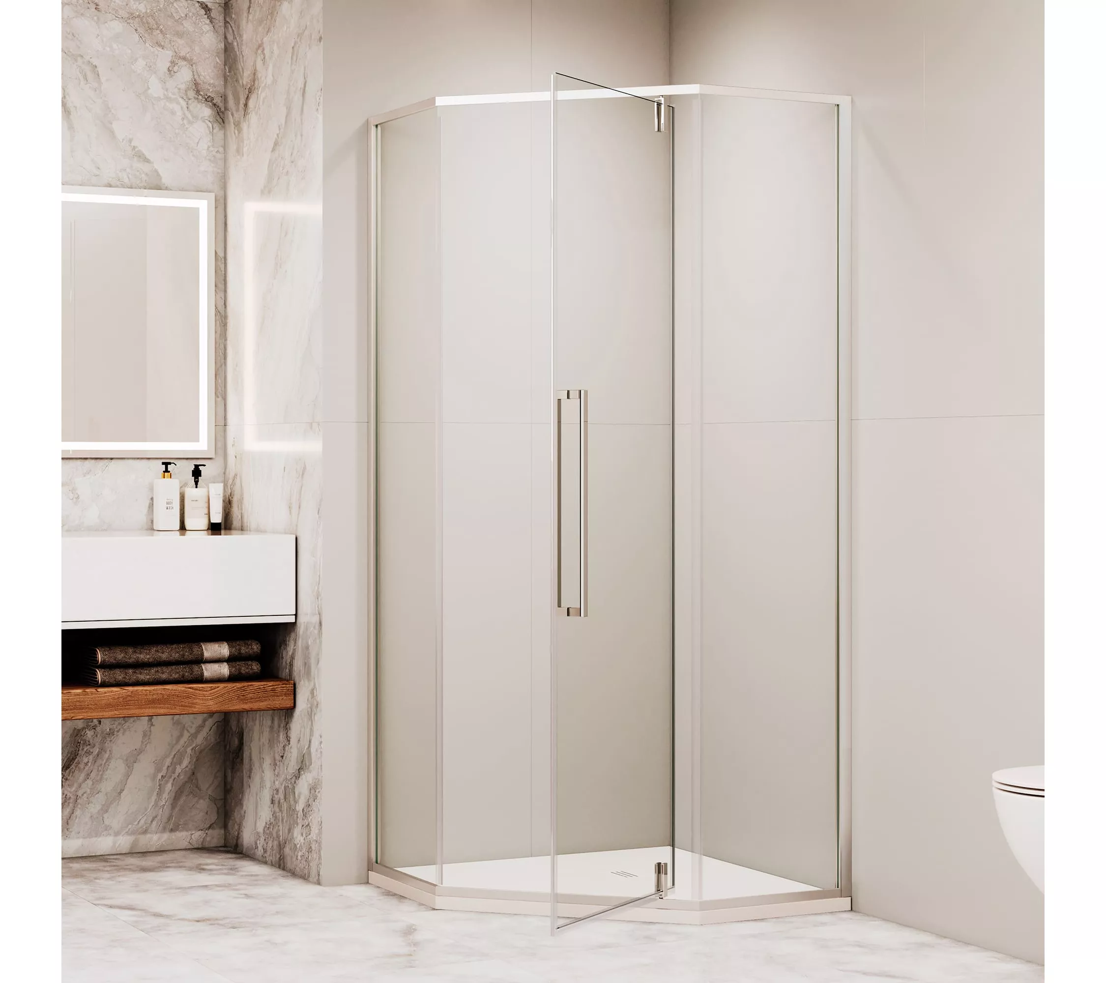 Душевой уголок трапеция с распашной дверью. Трап или поддон приобретается отдельно.