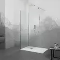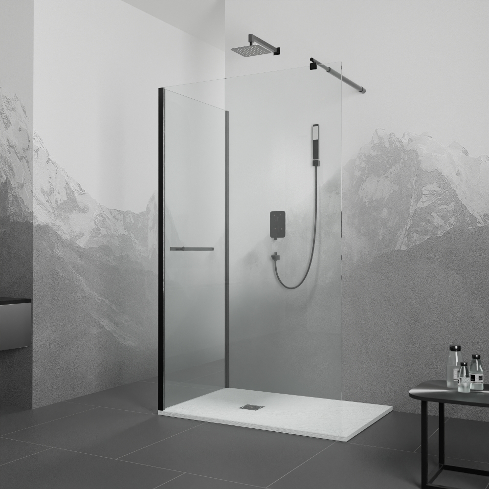Ударопрочное стекло толщиной 6 мм покрыто составом Easy Clean для защиты от известкового налета и длительной сохранности стекла в чистоте, силиконовые уплотнители уберегут полы от попадания влаги, а универсальная постановка уголка позволит адаптировать конструкцию к самым «капризным» стенам.