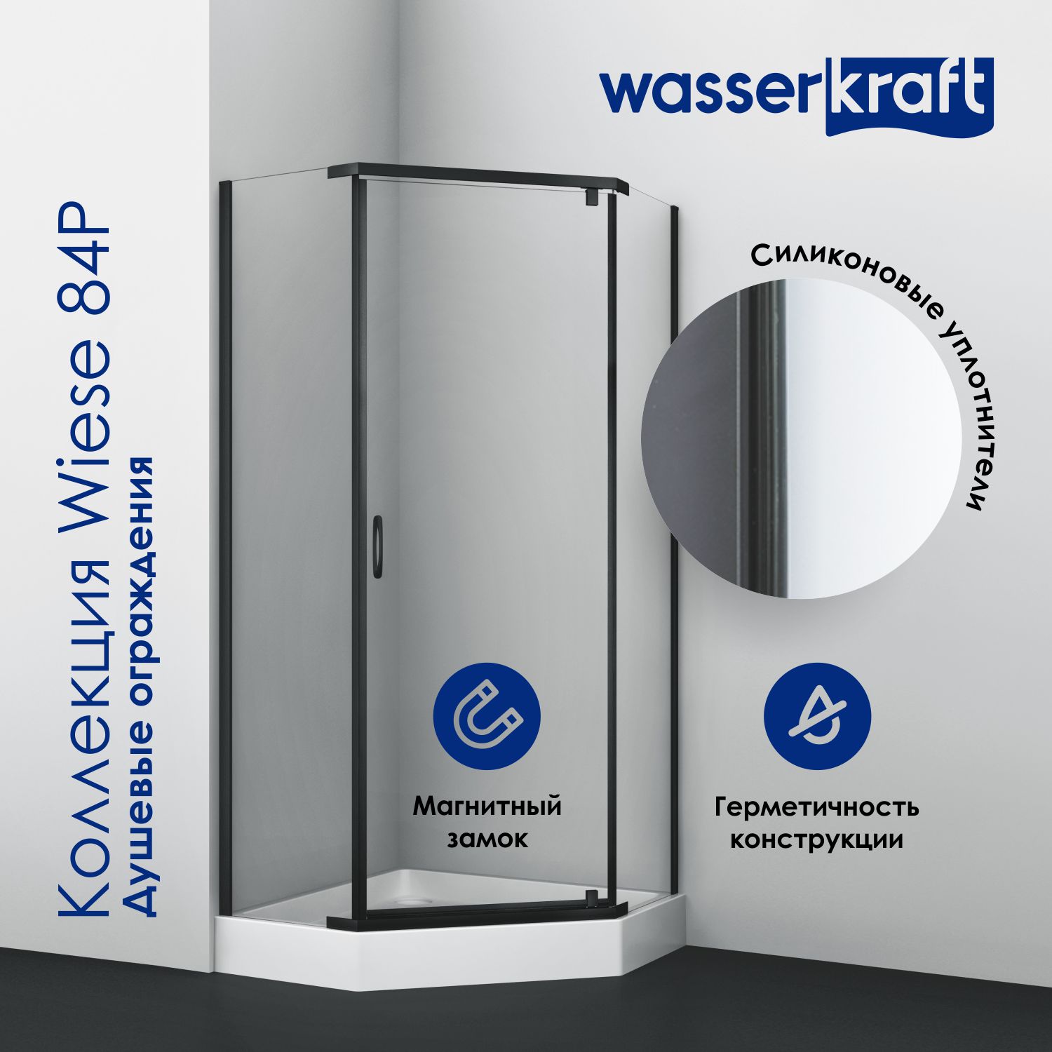 6) Силиконовый уплотнитель двери с магнитным замком - Благодаря данному уплотнителю двери душевого уголка герметично закрываются, плотно прилегая друг к другу.