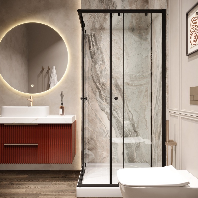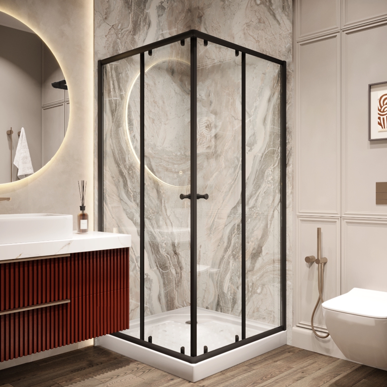 Уголок ZEQ911B душевой PARLY с поддоном (90х90х190) (9088)Размер: 90х90х190 смКомпактная стильная модель с угловым входом. Прямые черные линии в сочетании с прозрачным стеклом подчеркивают современный дизайн. Раздвижные двери на одинарных роликах ходят плавно, не соскакивают с направляющих.Достоинства:Поддон белый из ABS-пластика, квадратный, с бортиком по периметру; Профиля черные, алюминиевые; Стекла закаленные, прозрачные, толщиной 5 мм; Ролики одинарные, черные; Ручка пластиковая. круглая, в цвет профиля; Уплотнитель дверей магнитный, под 45°, в цвет профиля, с мягким закрытием. Внимание! Производитель оставляет за собой право вносить изменения в конструкцию и комплектацию моделей без предварительного уведомления!