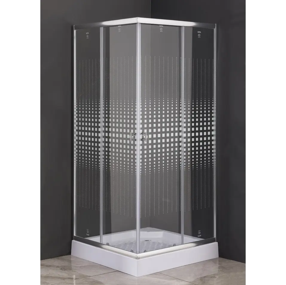 Уголок душевой PARLY ZQ8111 с поддономРазмер: 80х80х193 смСтильный уголок дополнит современное оформление ванной комнаты. Дизайнерский рисунок на прозрачном стекле не боится перепадов температуры и влажности, поэтому модель не теряет эстетики на протяжении всего пользования.Достоинства:Закаленное стекло 4 мм. При сильном ударе стекло может разбиться на достаточно мелкие, но при этом безопасные осколки.Низкий квадратный поддон (10 см) с рельефным дном будет особенно удобен пожилым и людям с инвалидностью.Одинарные ролики обеспечивают плавный ход раздвижных дверей.Профиль и ручки не подвержены коррозии.Сифон входит в комплект.