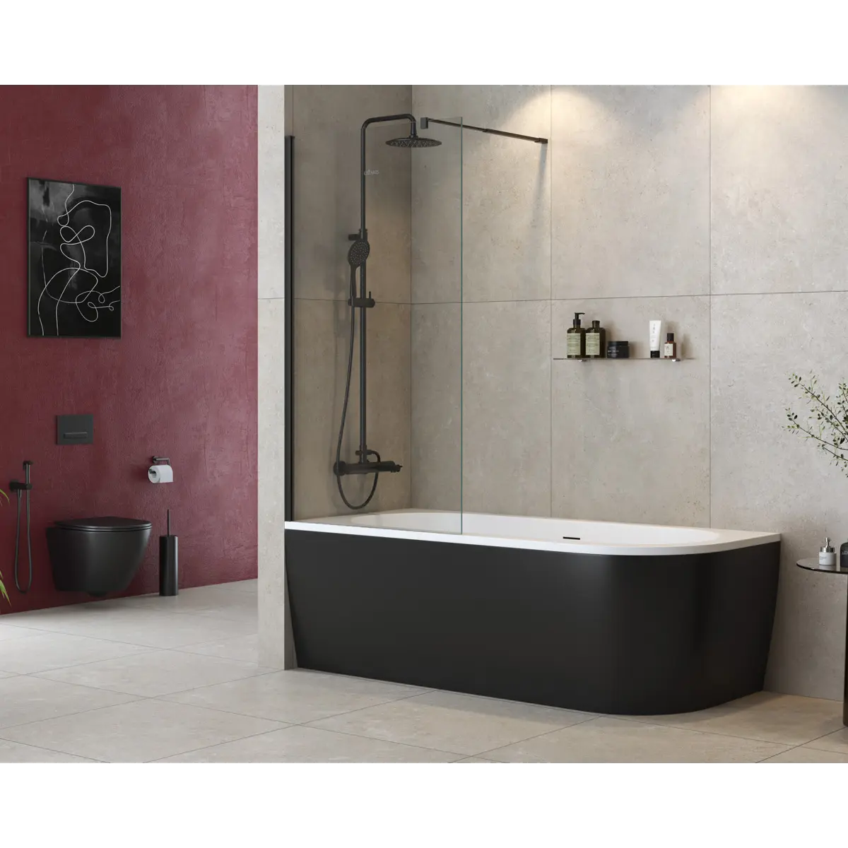 Перегородки для ванны серии LIBERTA от CEZARES –это сочетание простоты, роскоши, практичности и удобства эксплуатации. Ширина перегородки 80 или 90 см при высоте 155 см позволяет создать в ванне комфортную зону для принятия душа без опасения забрызгать пол водой. Безопасное закаленное стекло толщиной 8 мм гарантирует прочность конструкции, а телескопический профиль позволит установить перегородку на любую прямоугольную ванну шириной от 75 см. Профиль и кронштейн доступны в цвете "хром", для размера 90 - дополнительно в цвете NERO (черный матовый). Изделие универсальное: левый и правый вариант достигается простым поворотом изделия