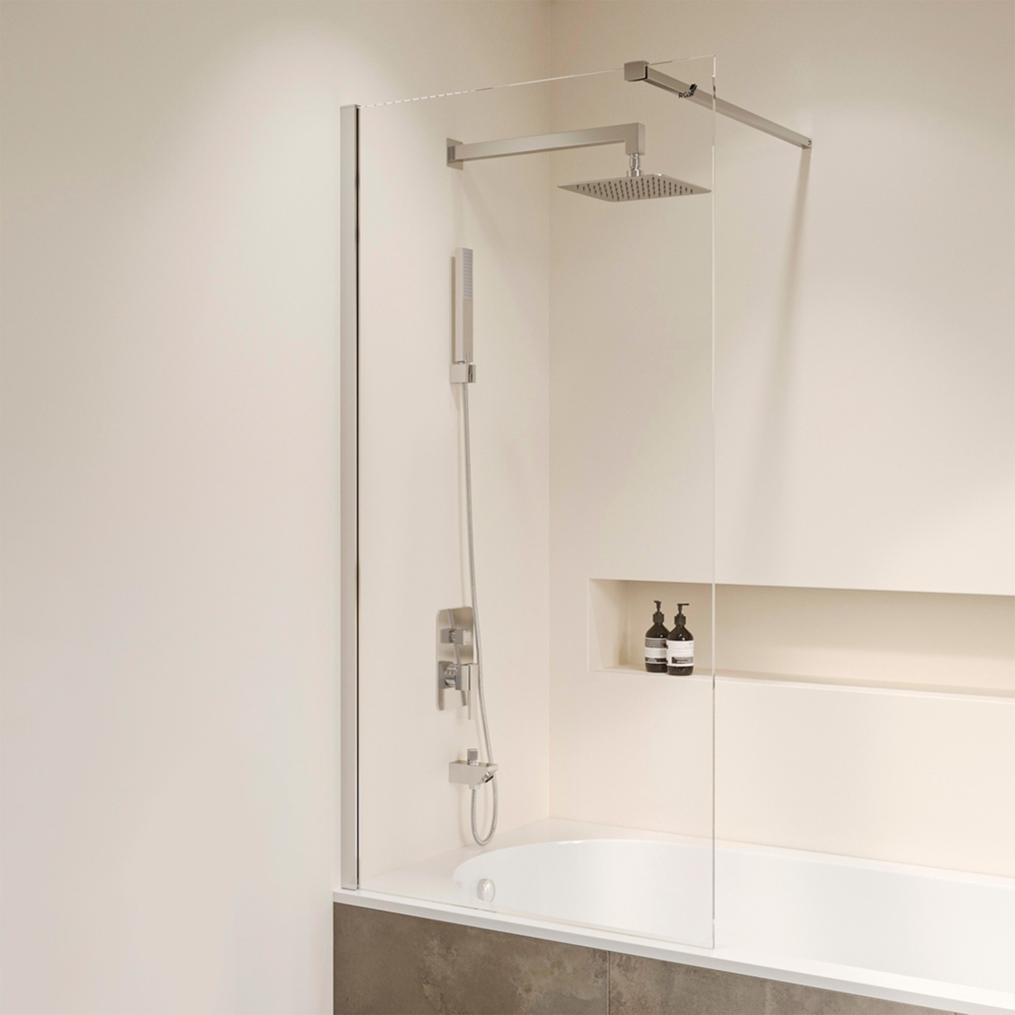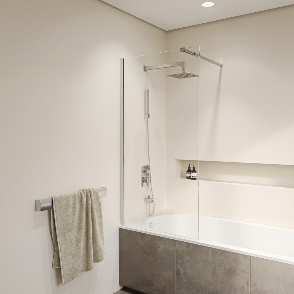 Шторка на ванну неподвижная. Верхняя стойка-держатель длиной – 1200 мм.