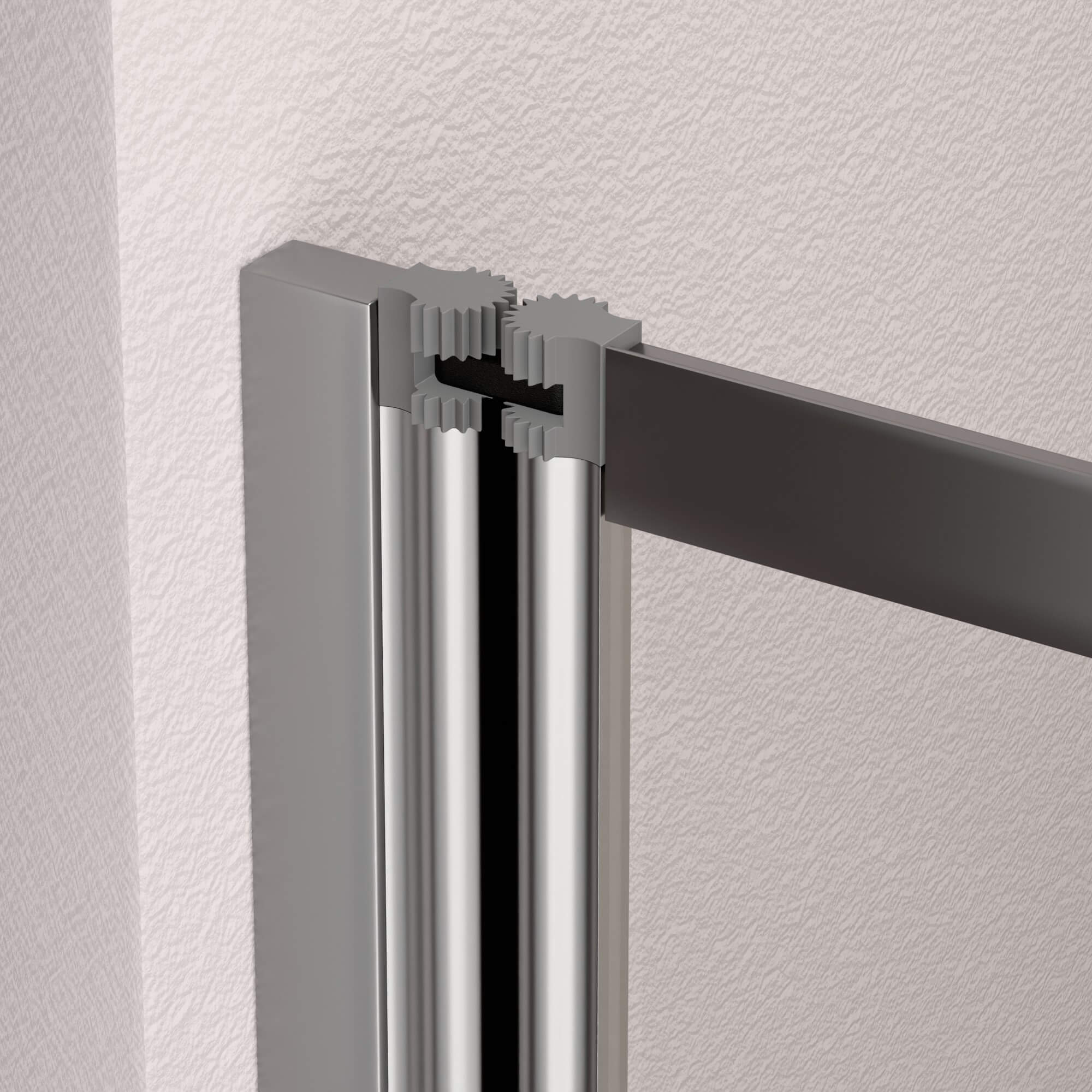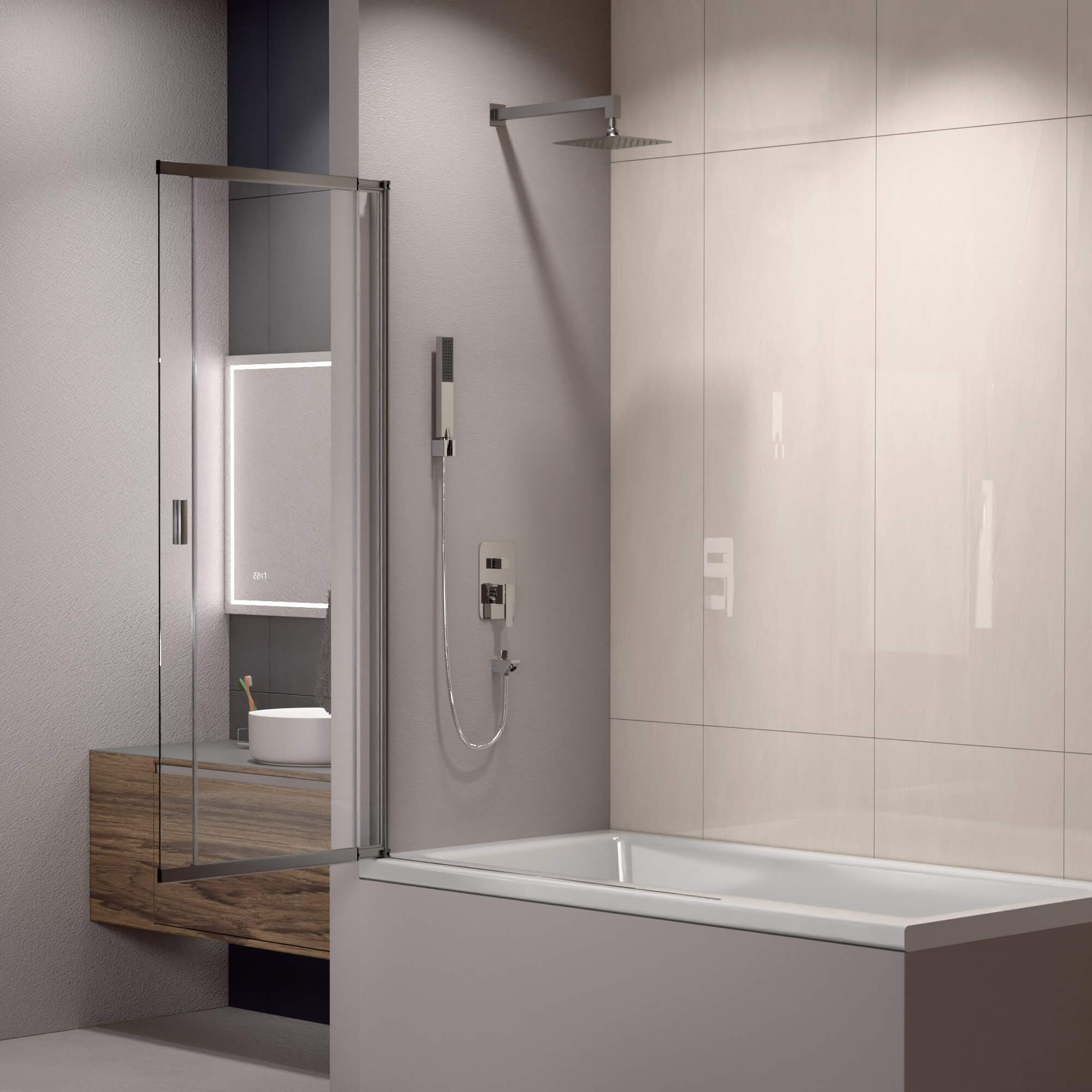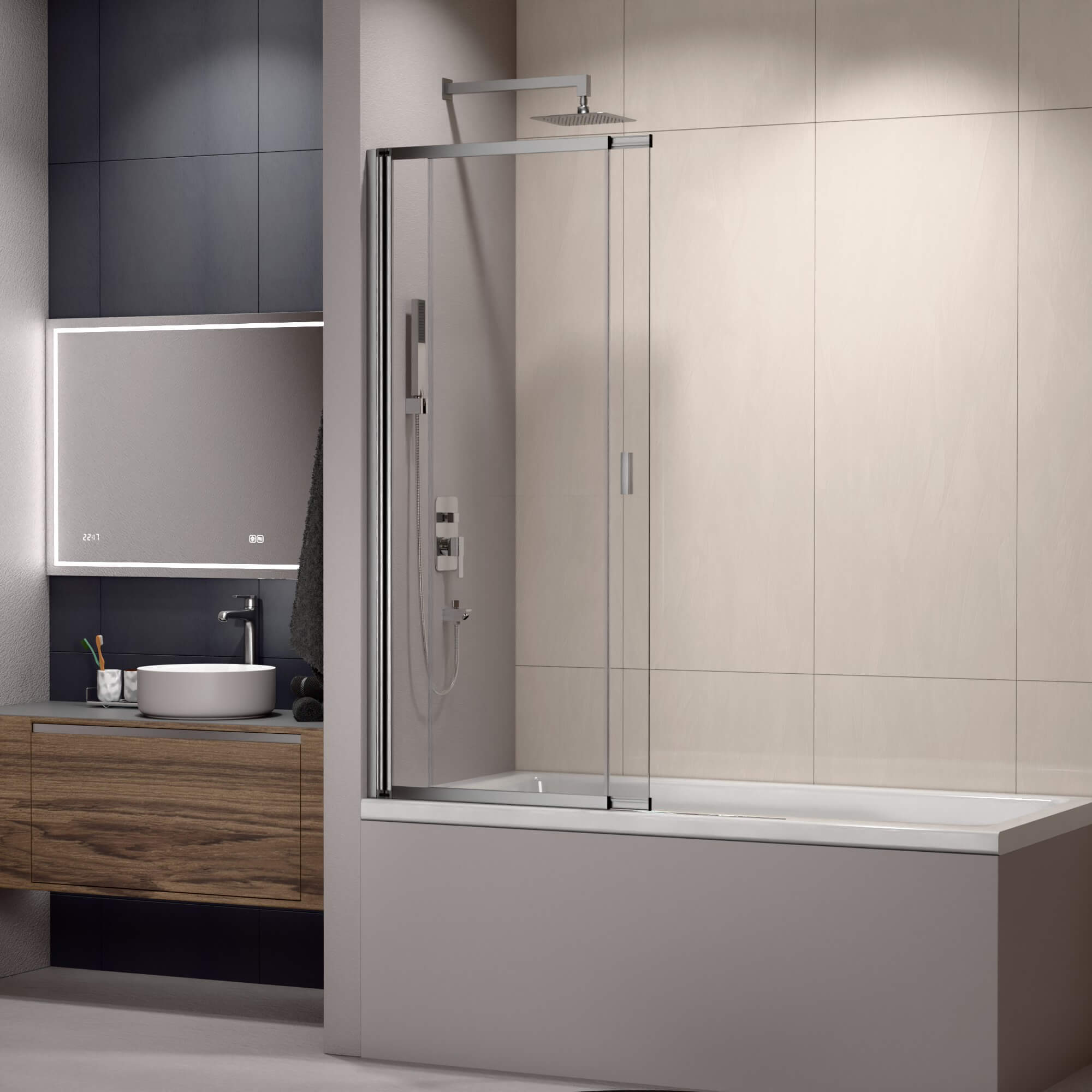 Шторка на ванну, сдвижная дверь маятниковая. Толщина закаленного, безопасного стекла 4 мм. Стекло сдвигается от 600 мм до 1000 мм. В комплекте порог душевого ограждения.
