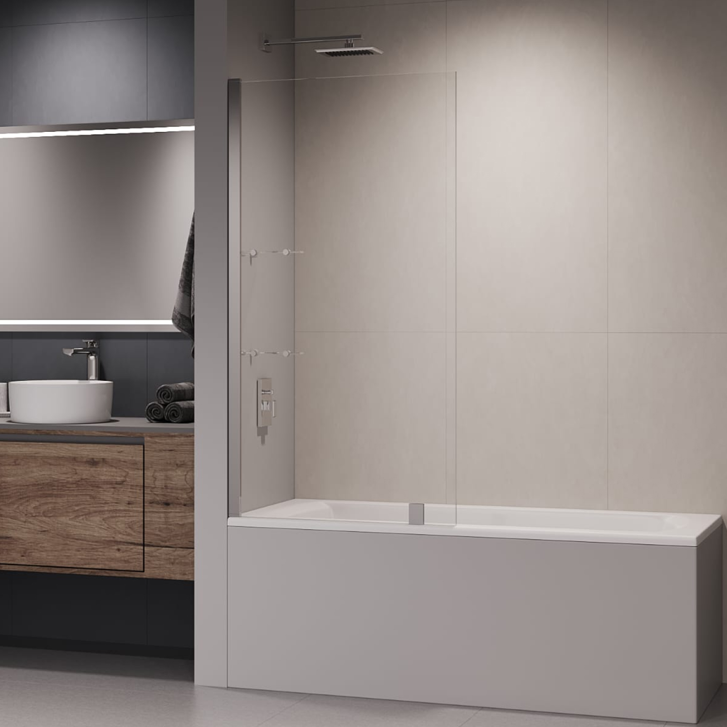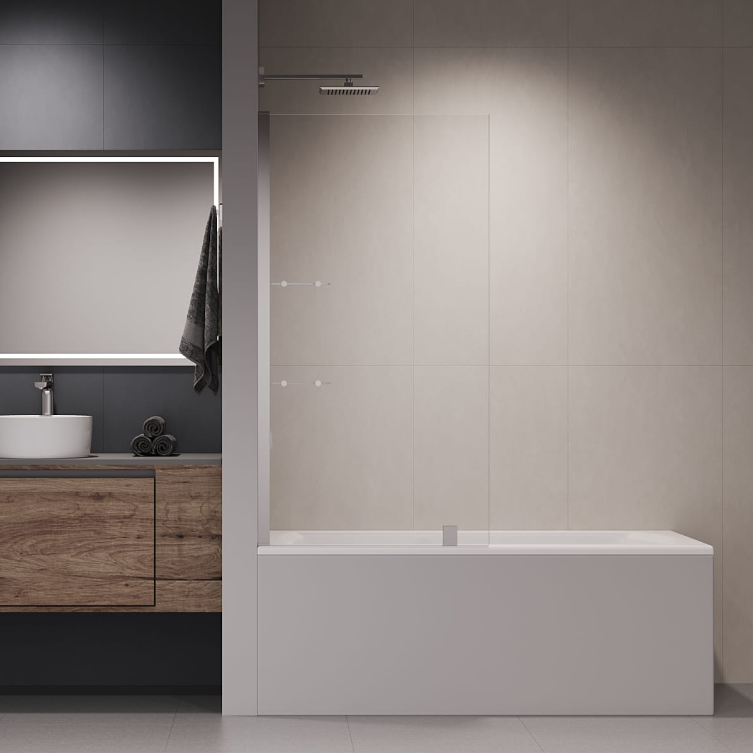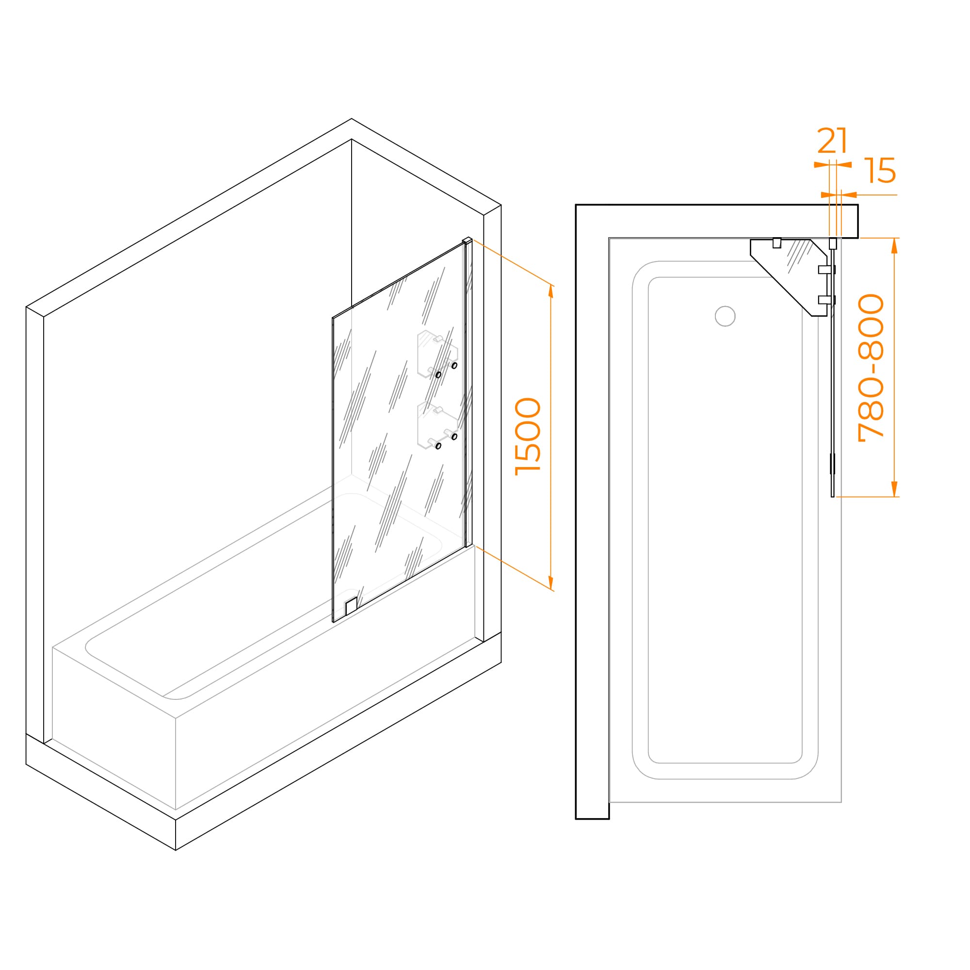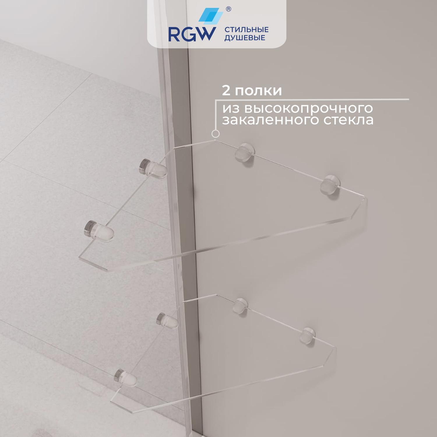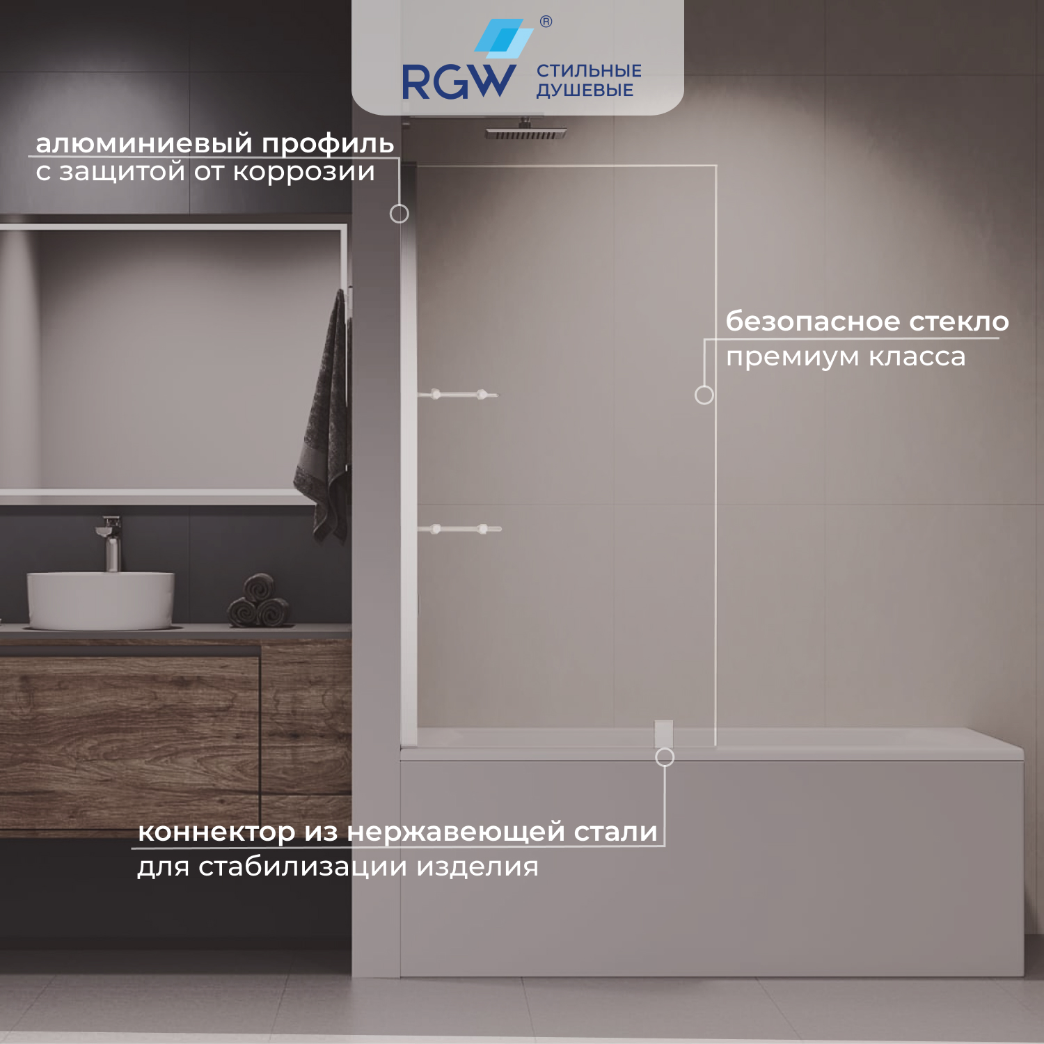 Шторка на ванну неподвижная. Модель RGW SC-53 толщина закаленного, безопасного стекла 8 мм. С пристенными боковыми полочками.