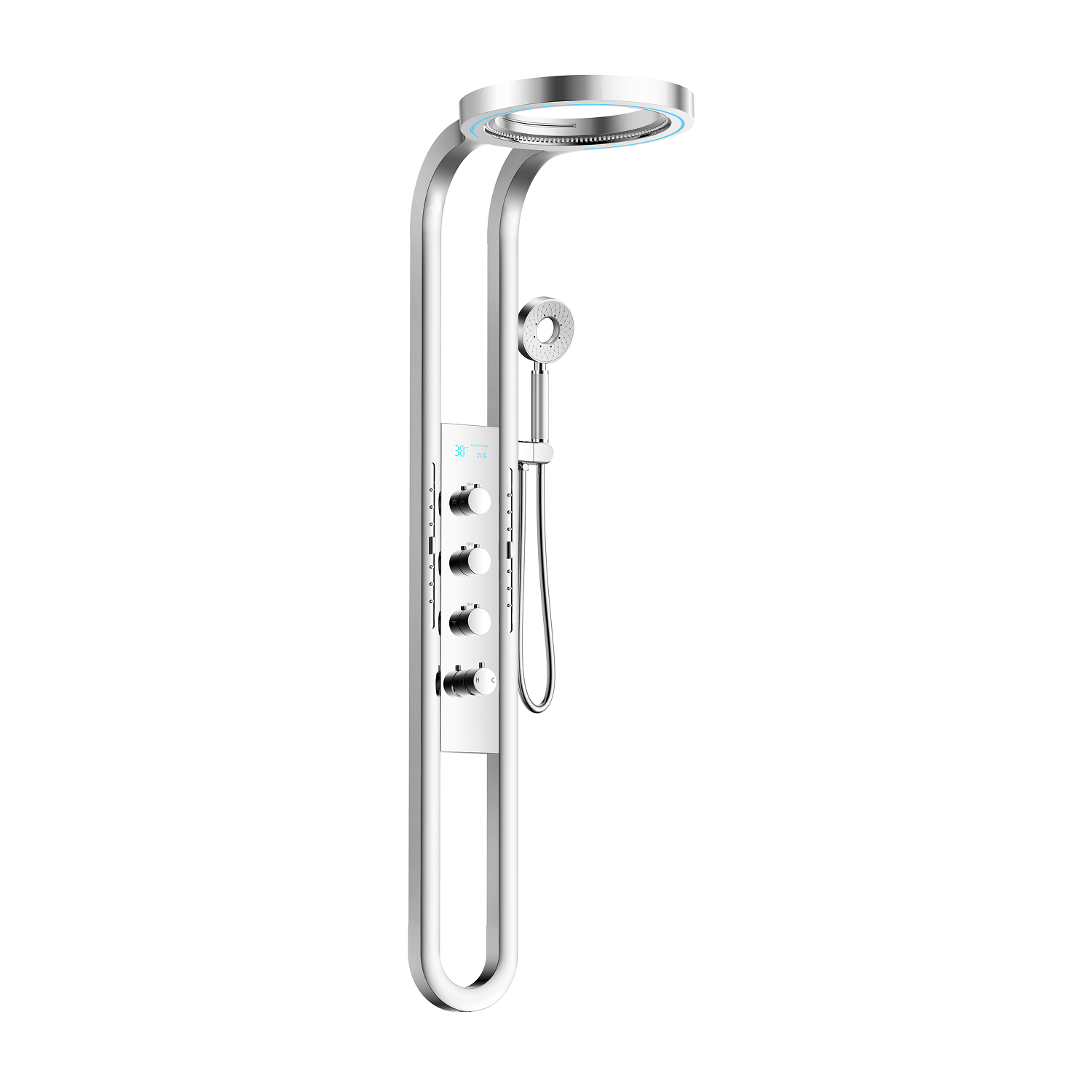 Цифровой дисплей : LED-экран в реальном времени показывает температуру воды (цифрами и цветовой индикацией) и время, проведённое в душе
