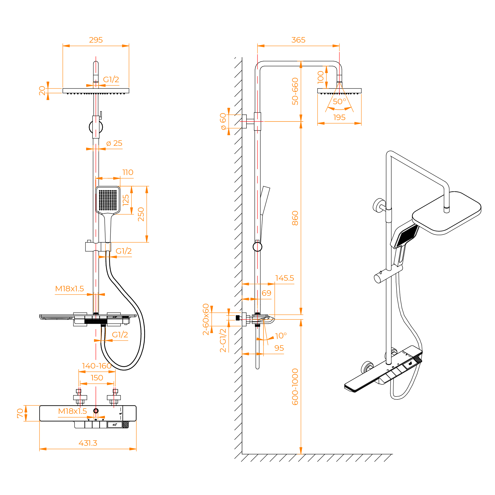 Душевая стойка с термостатом