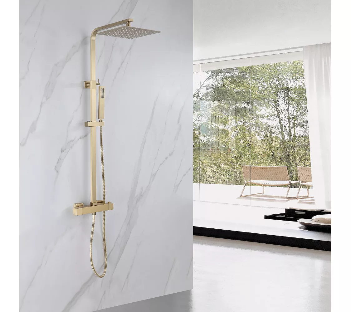 Душевая стойка ABBER Daheim AF8260GL с термостатом без излива, золото матовое