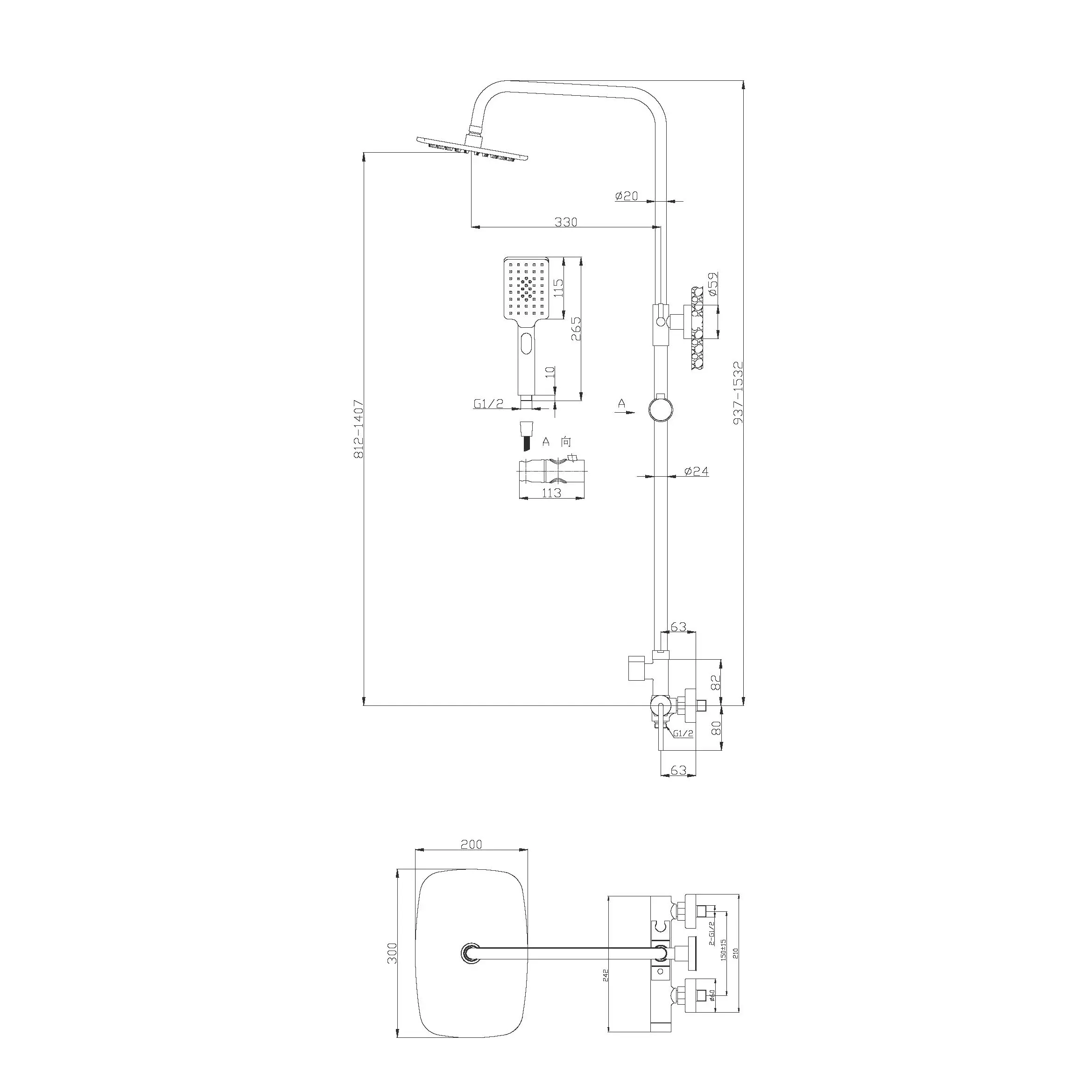 Душевой шланг, душевая лейка, держатель для душа, переключатель потоков