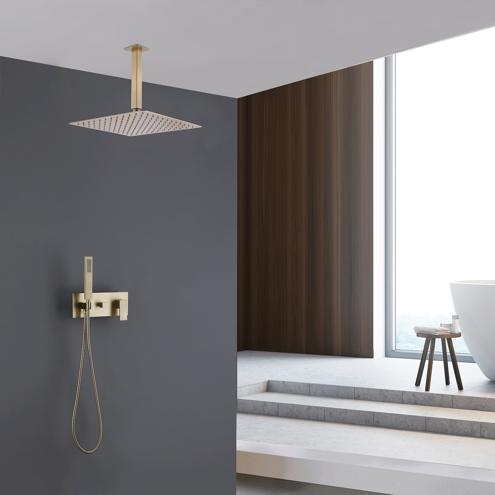 Душевая система ABBER Daheim AF8221G скрытого монтажа без излива, золото матовое