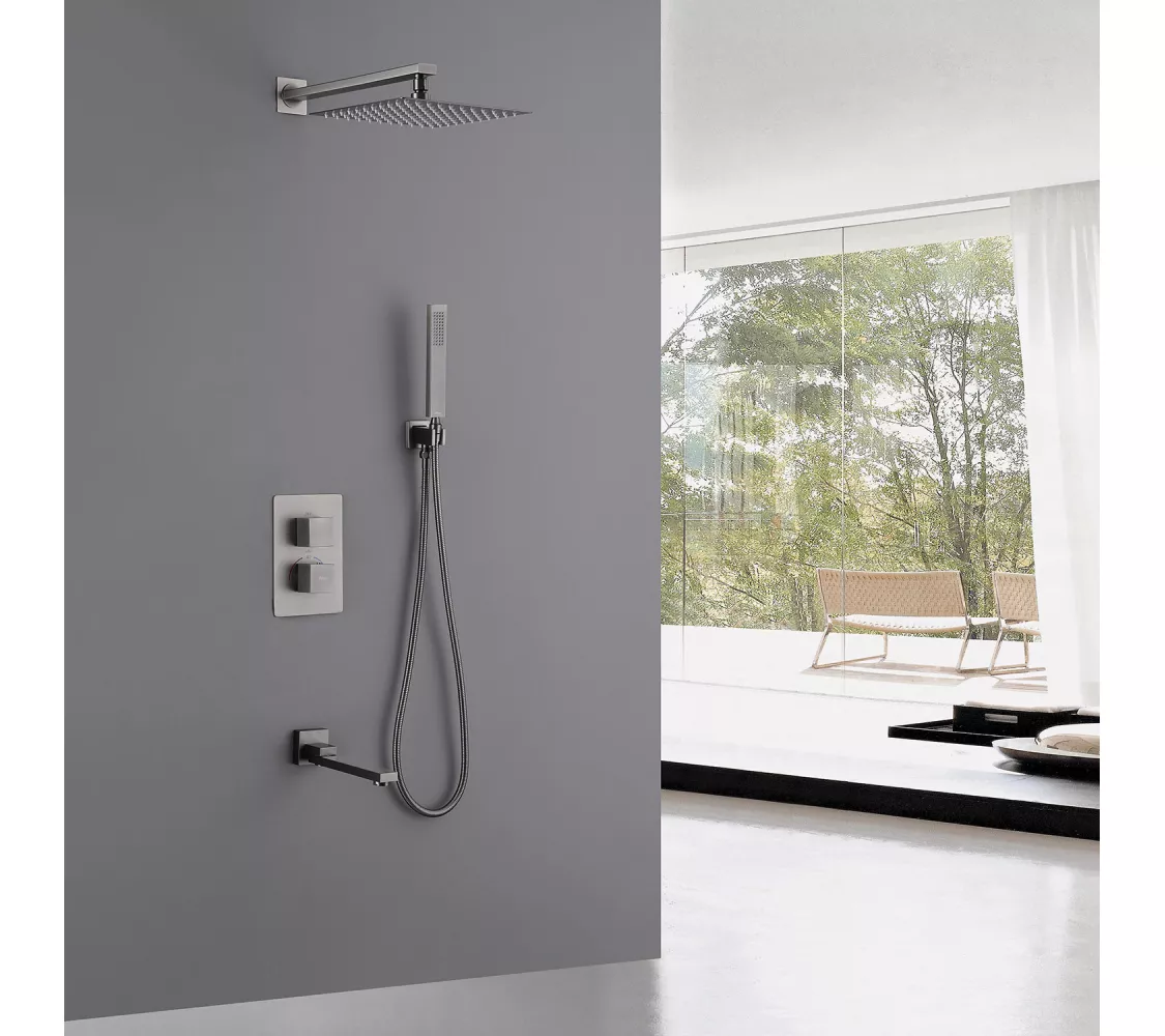 Душевая система ABBER Daheim AF8250NG скрытого монтажа с изливом, термостат, никель