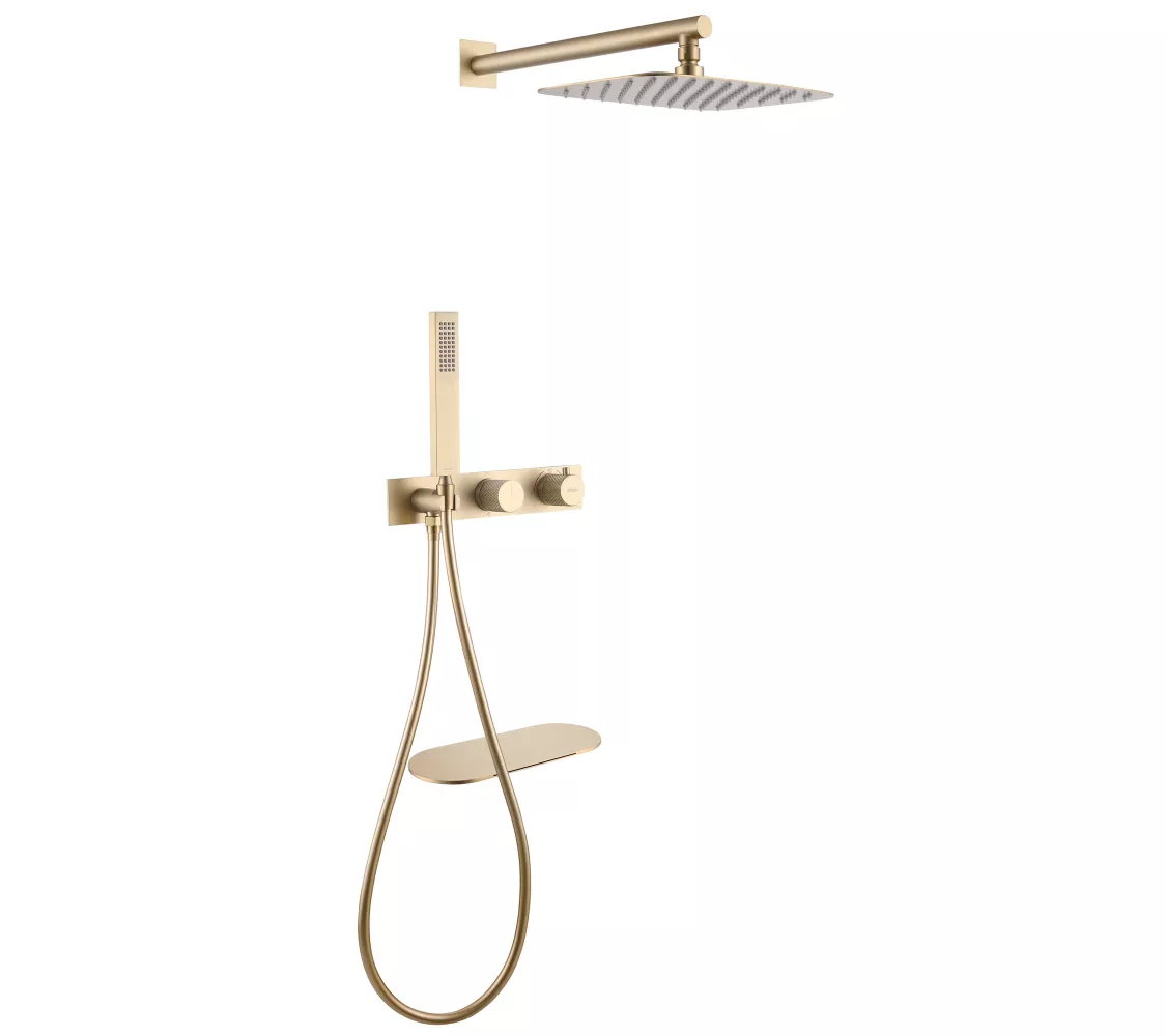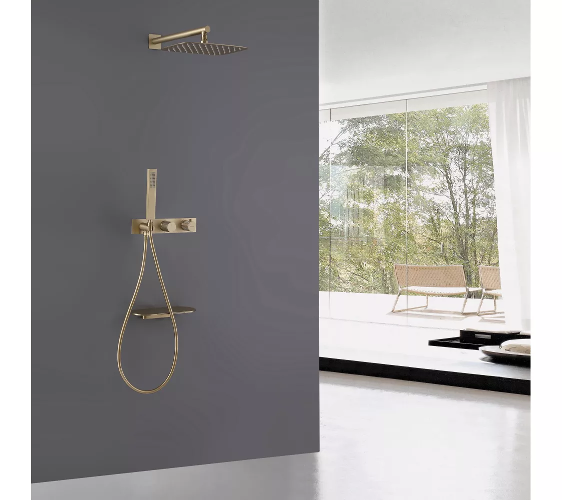 Душевая система ABBER Rund AF8750G скрытого монтажа с изливом, термостат, золото матовое