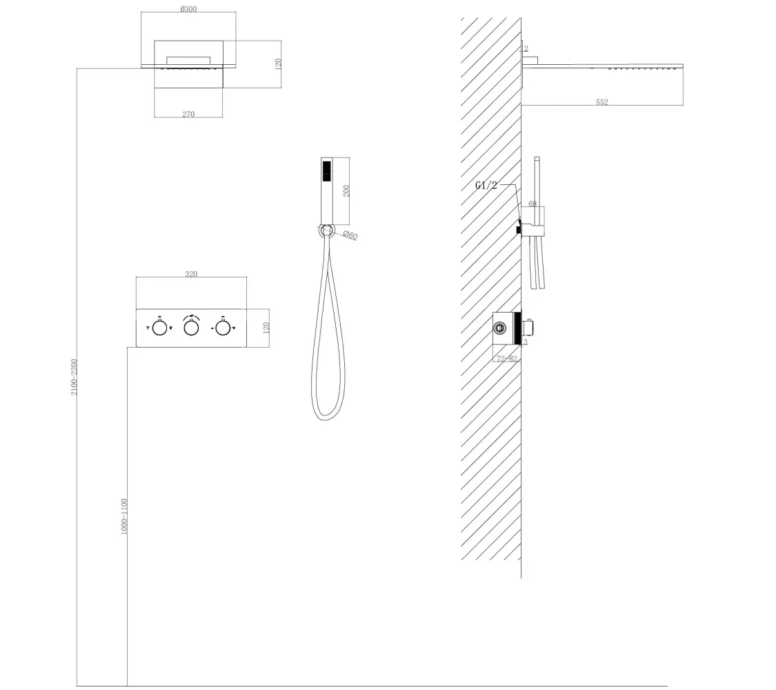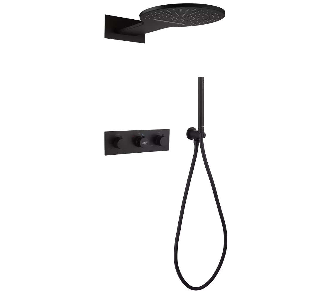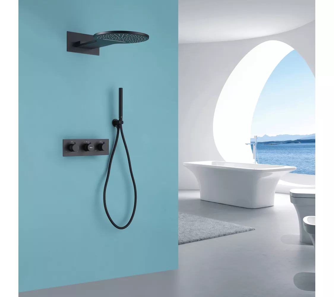 Душевая система ABBER Wasser Kreis AF8151B скрытого монтажа без излива, термостат, черный матовый