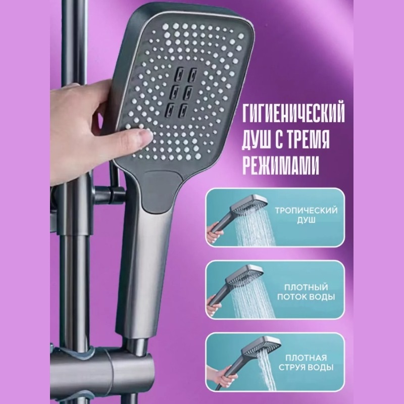 Ручной душ имеет 3-4 режима и удобное переключение кнопкой на ручке лейки.Особенности: