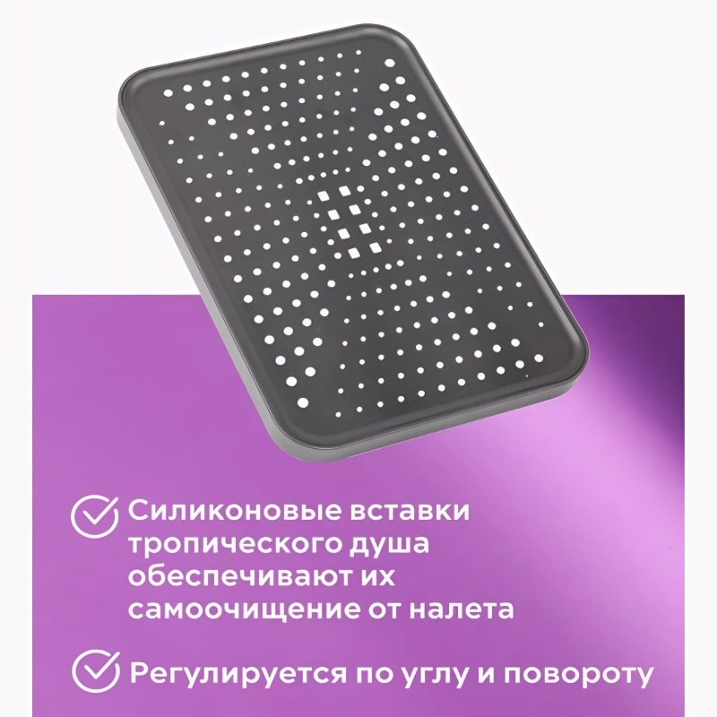 Лейка тропического душа имеет прямоугольную форму со сторонами 20см*30см.