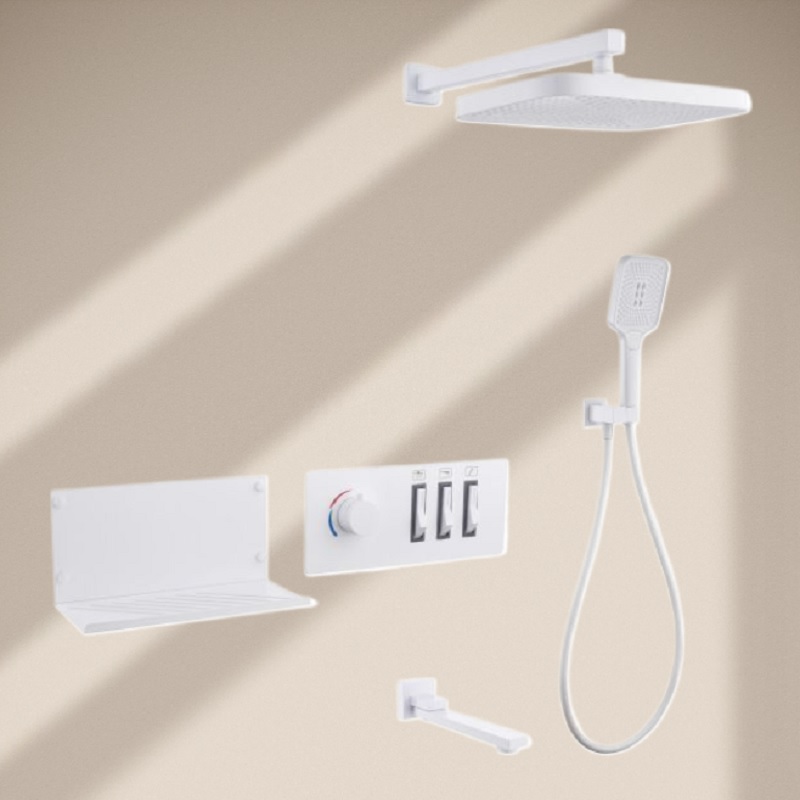 Выход воды подобен дождю, благодаря смешиванию воды с воздухом. Ручной душ позволит вам выбрать нужный режим под ваше настроение. А благодаря термостату вам не нужно беспокоится о постоянном подборе комфортной температуры. Набор для душа включает в себя смеситель, тропический душ, ручной душ и полку.