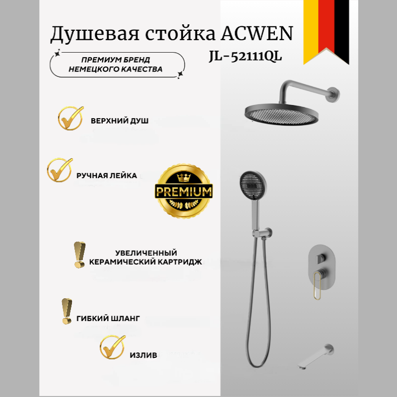 Душевая система с тропическим душем фирмы ACWEN -это ключевой элемент, который добавляет дизайнерскую привлекательность и функциональность Вашей ванной комнате.