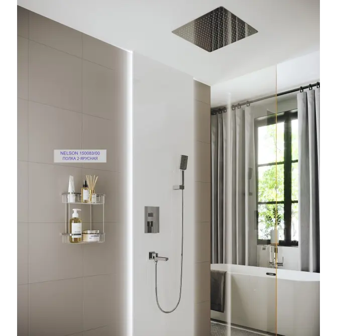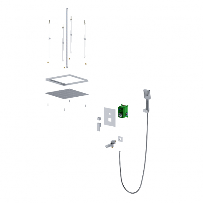 - Тропический душ, потолочный 400*400 мм (латунный) с установочной коробкой - 1 шт.