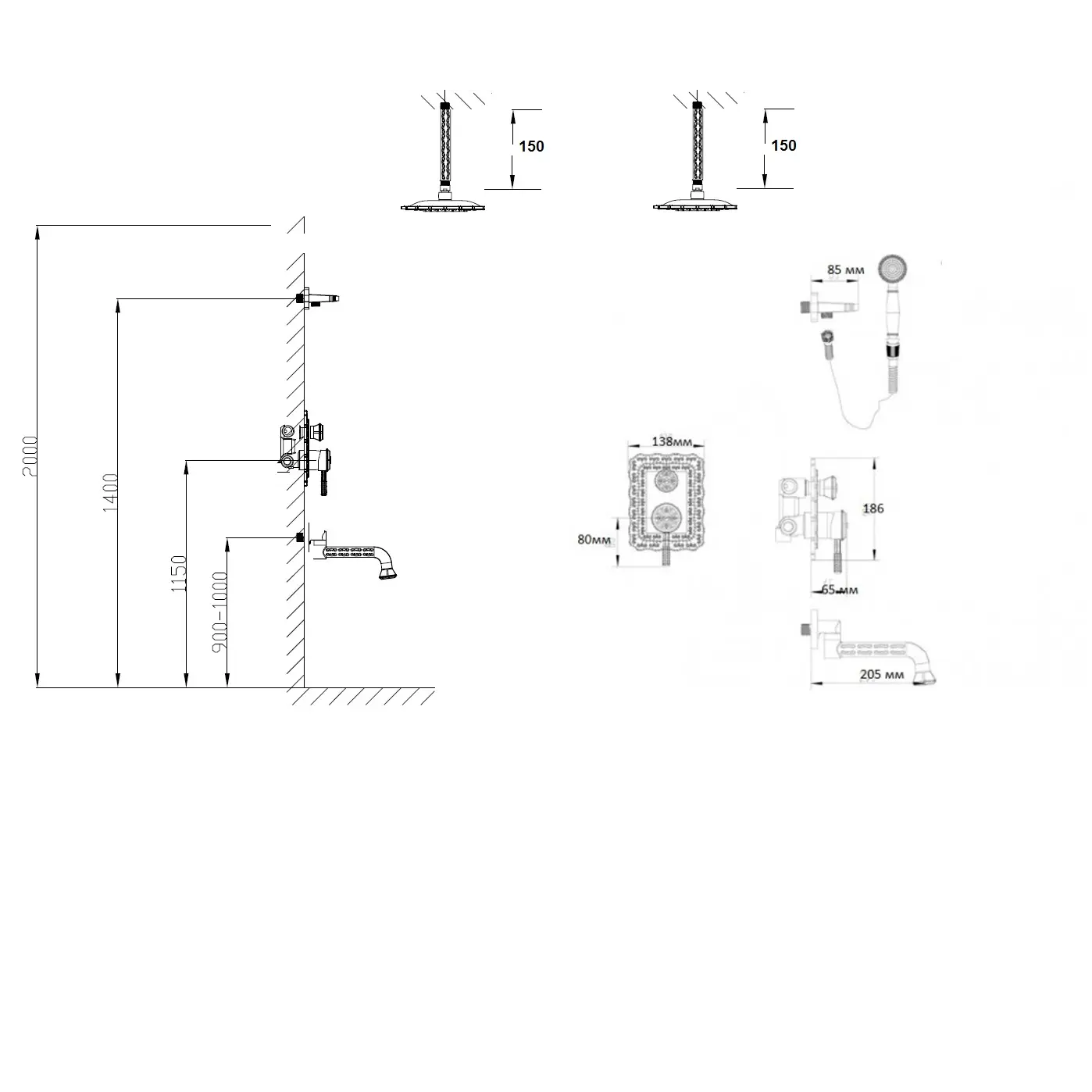 Размер верхнего душа