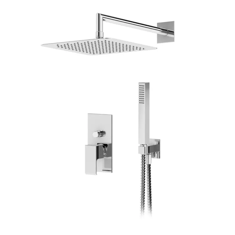 PORTA-DSIPQ-30-01 Душевая система со встраиваемым смесителем, верхним душем 30 см металл, с выводом и ручным душем со штуцером, держателем и шлангом, исполнение хром