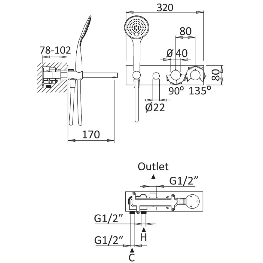 Штуцер, держатель для душа, ручной душ