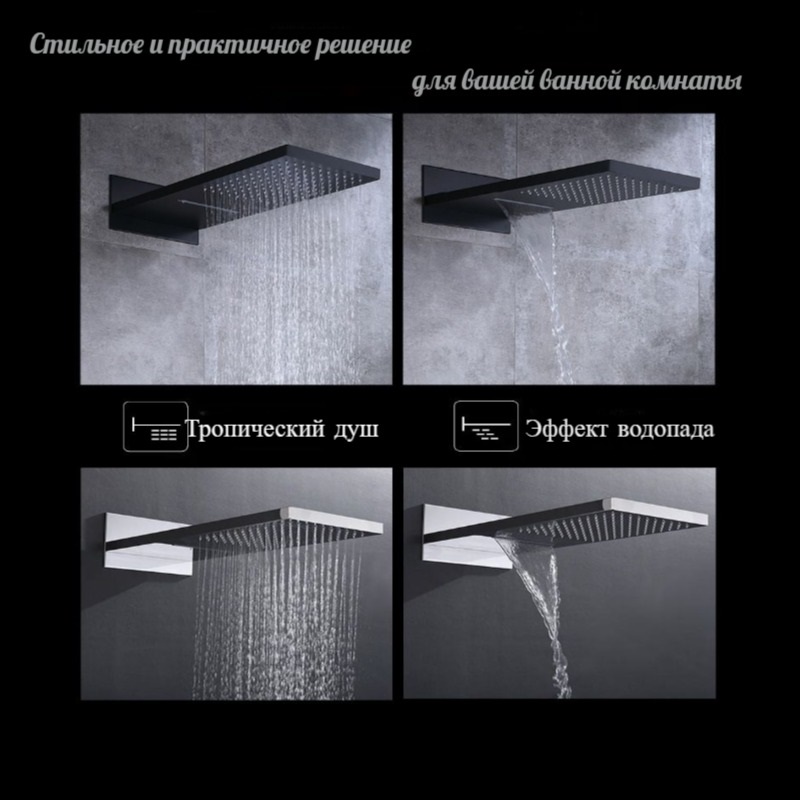 С помощью небольшого переключателя Вы сможете воспользоваться одним из двух режимов душевой системы: тропическим душем и душевой лейкой, что позволит Вам получить максимальное наслаждение от каждого приема душа.