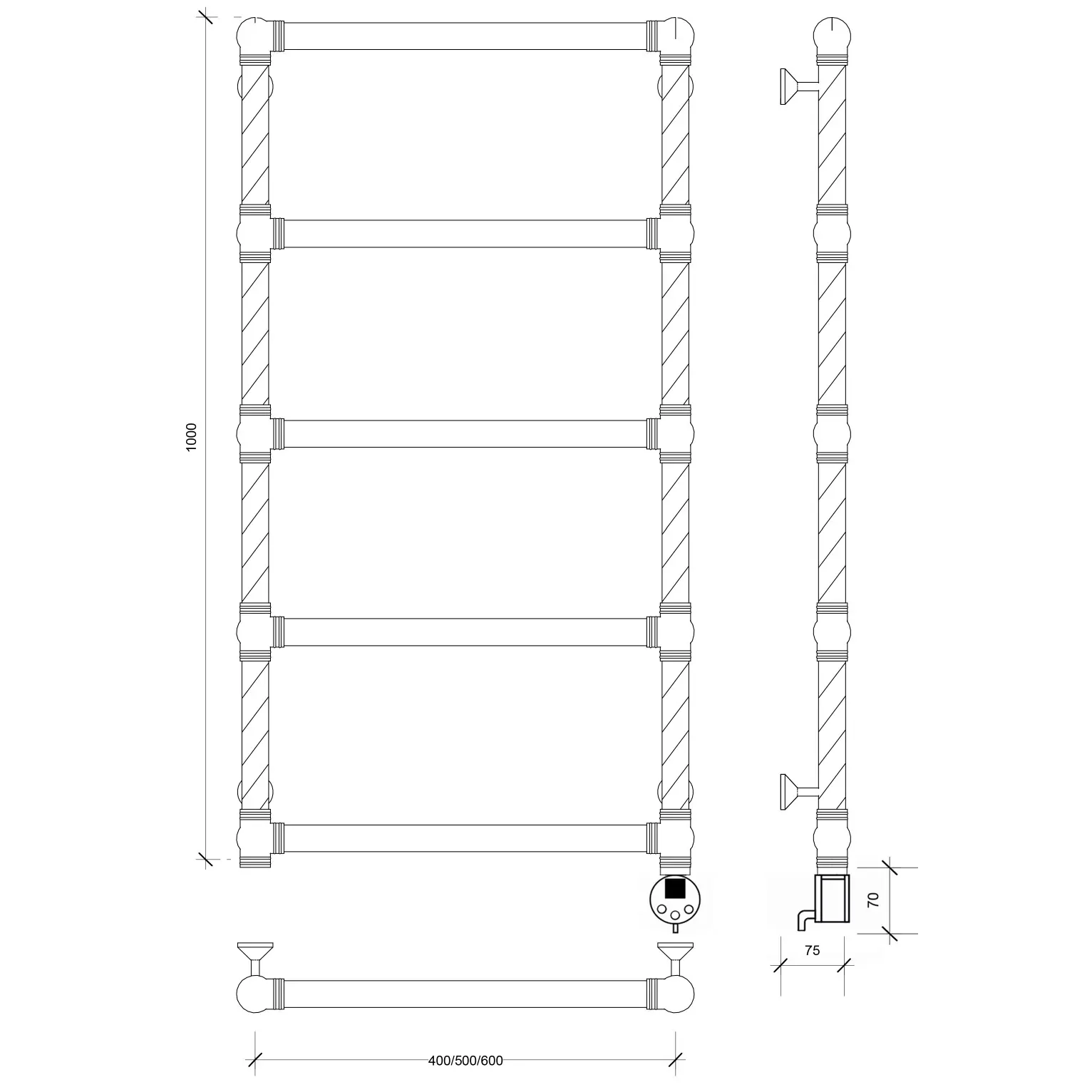 Бесшовная сантехническая латунная труба.Электровыключатель , терморегулятор, автовыключение-есть. Напряжение 220В.