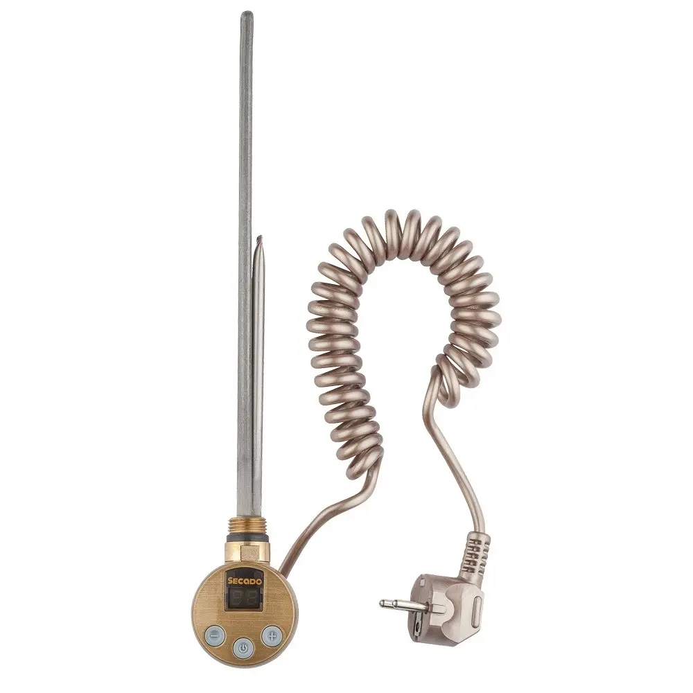 Бесшовная сантехническая латунная труба.Электровыключатель , терморегулятор, автовыключение-есть. Напряжение 220В.