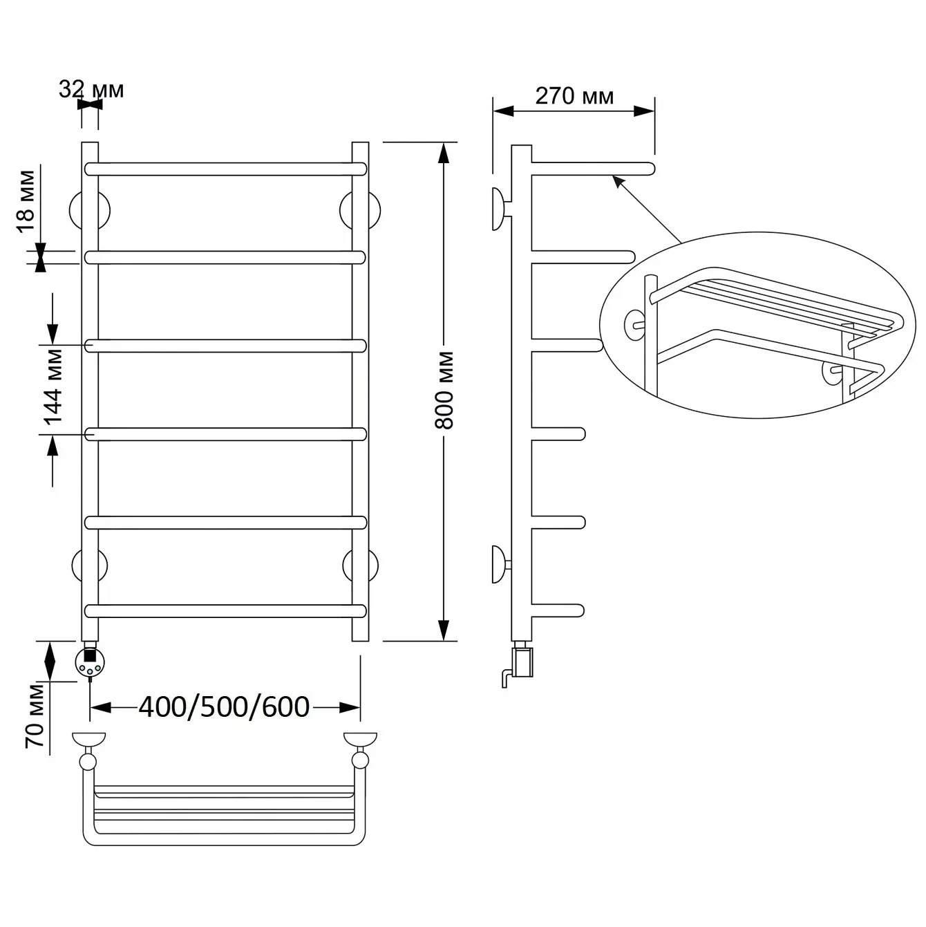 Полотенцесушитель латунный Secado Мерида 2 , с полочкой , электрический L/R бронза