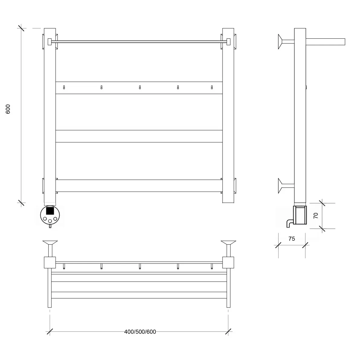 Полотенцесушитель Secado Комано 1 КСП, с крючками и полочкой , электрический L/R черный матовый
