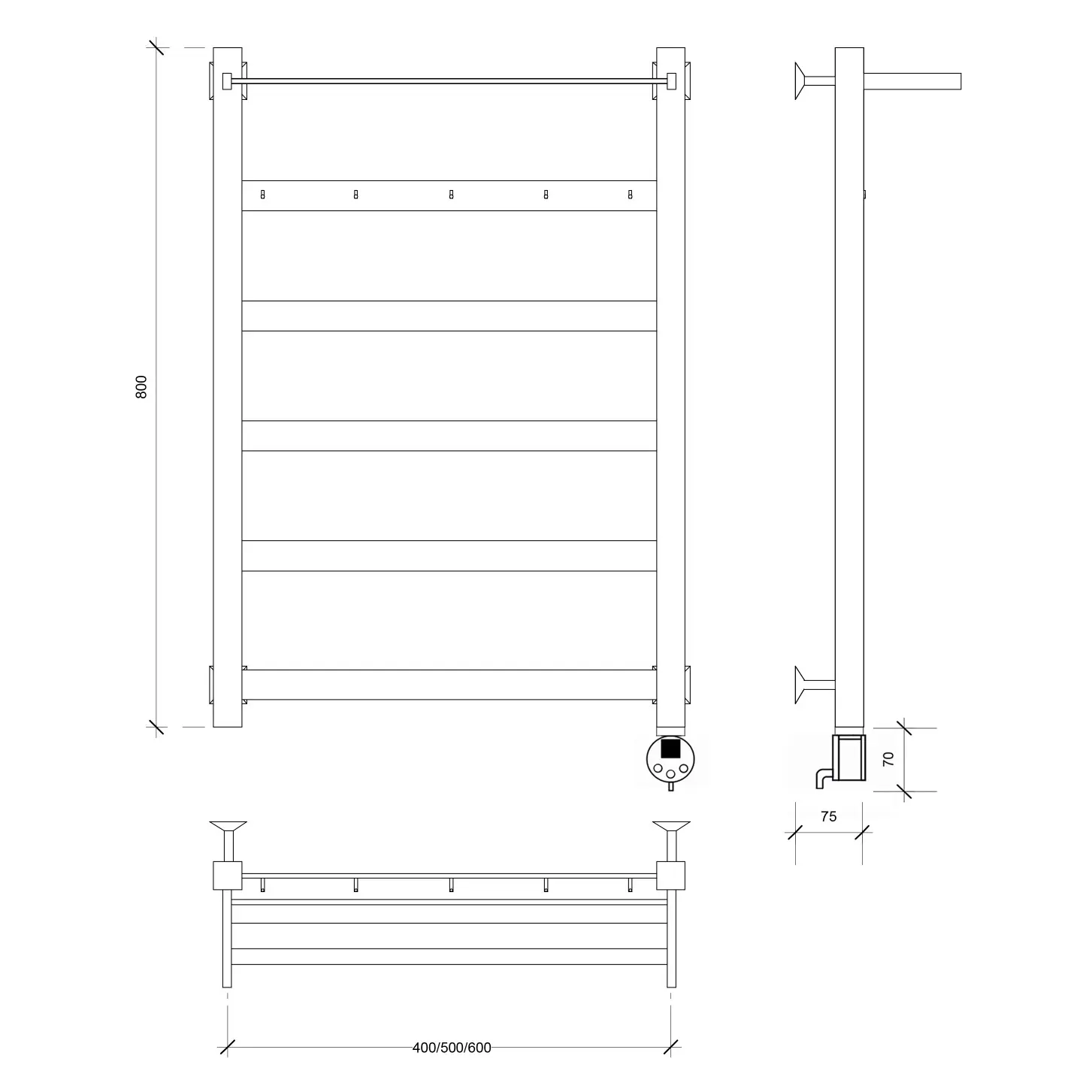 Полотенцесушитель Secado Комано 1 КСП, с крючками и полочкой , электрический L/R черный матовый