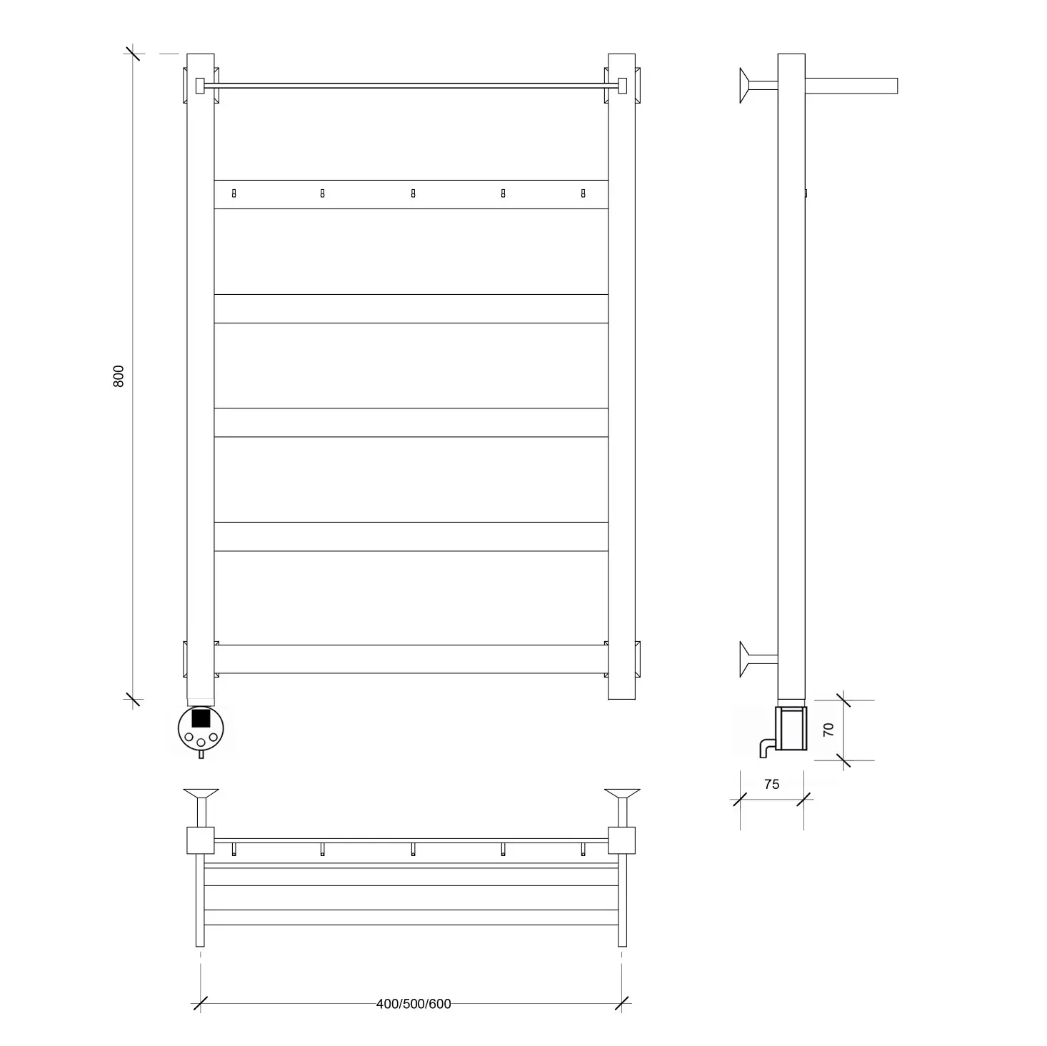 Полотенцесушитель Secado Комано 1 КСП, с крючками и полочкой , электрический L/R черный матовый