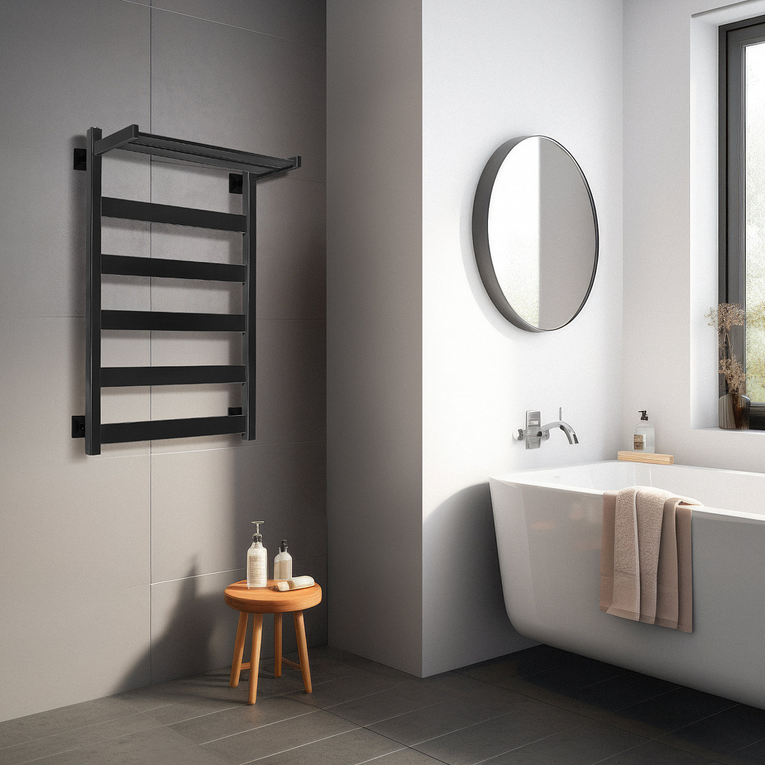 Полотенцесушитель Secado Комано 1 СП , с полочкой, электрический L/R черный матовый