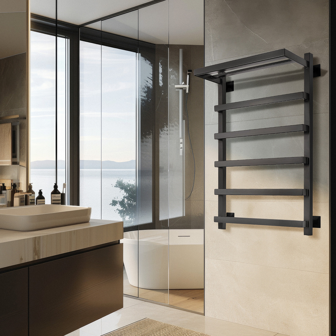 Полотенцесушитель Secado Корсано 1 СП , с полочкой , электрический L/R черный матовый