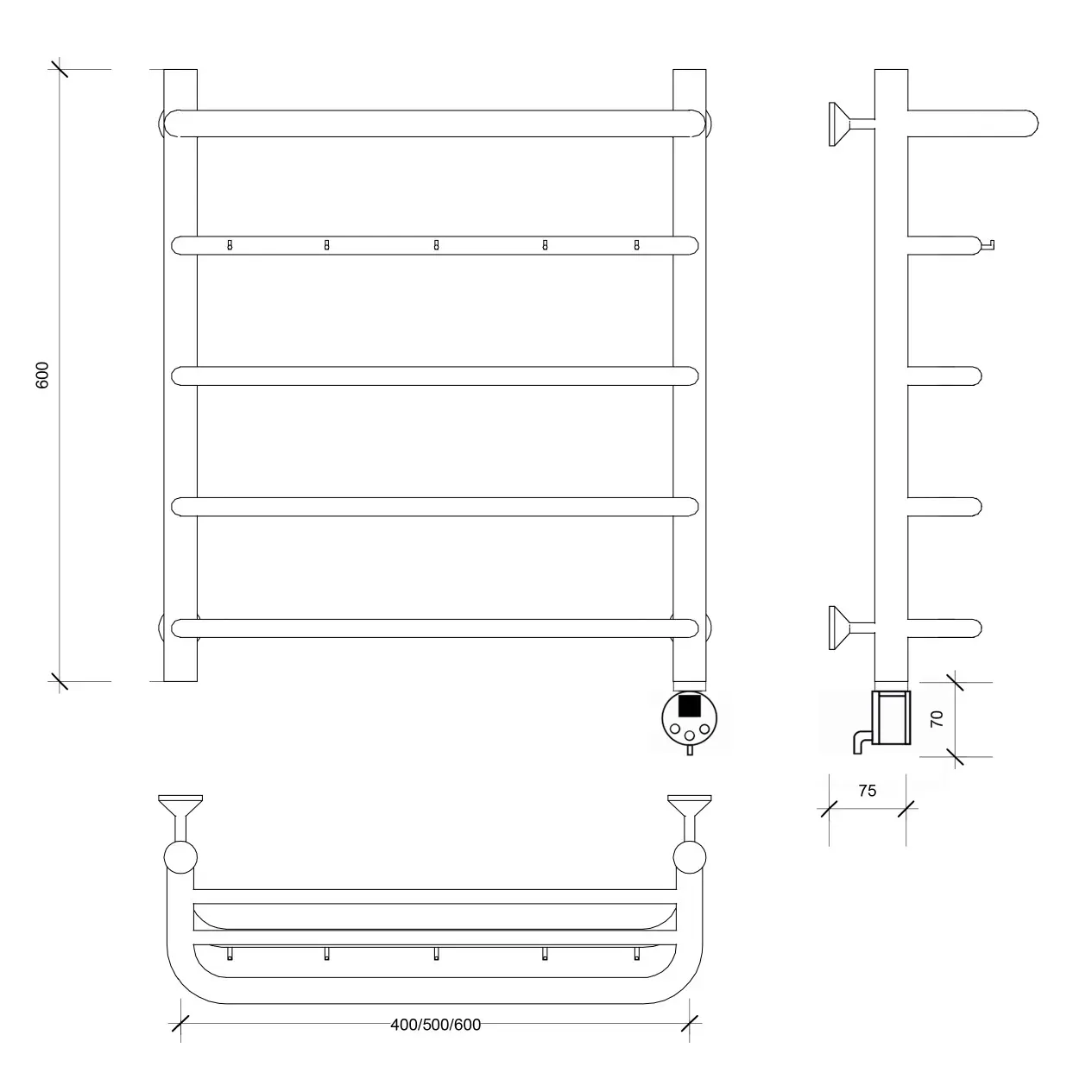 Полотенцесушитель Secado Мерида 1 КСП , с крючками и полочкой, электрический L/R хром