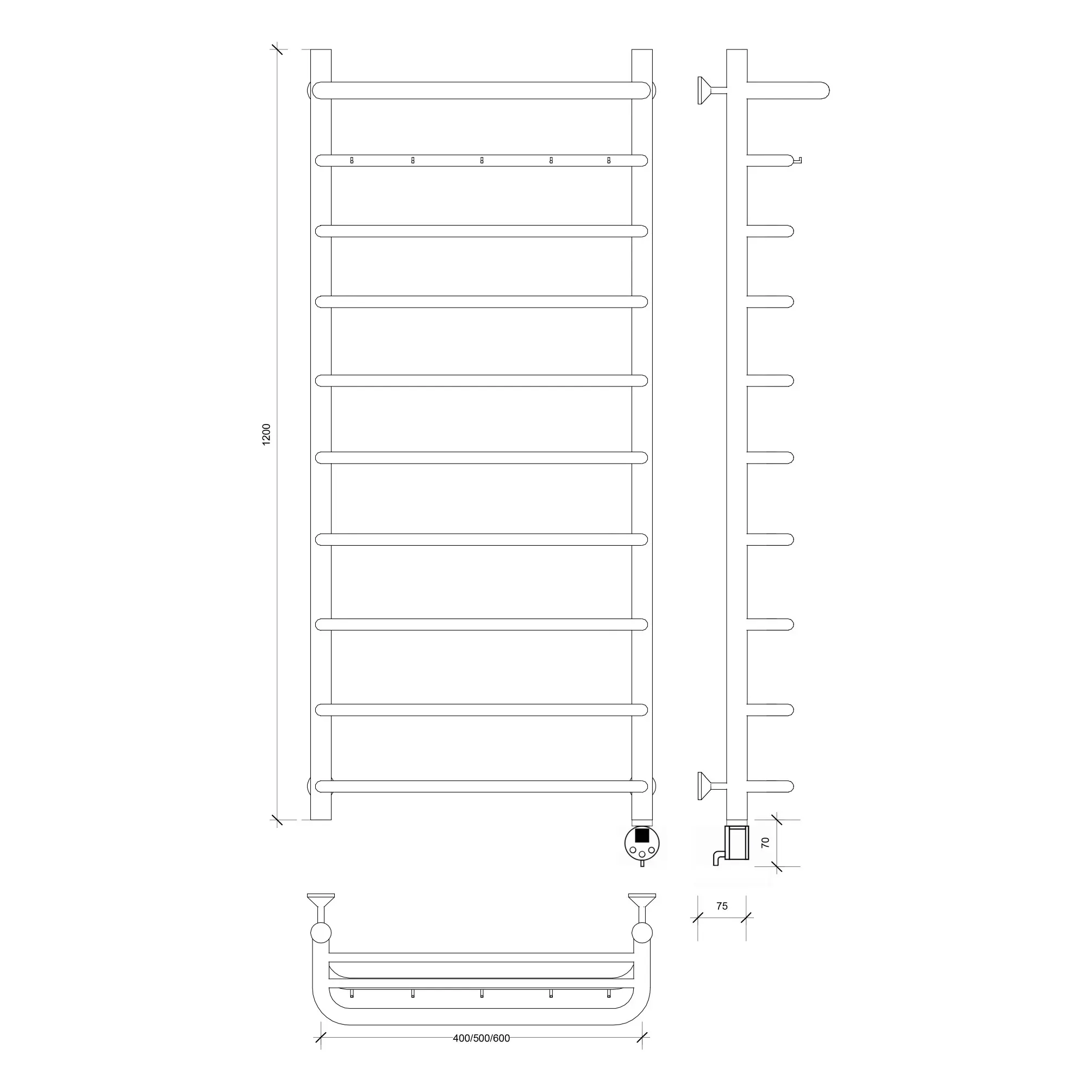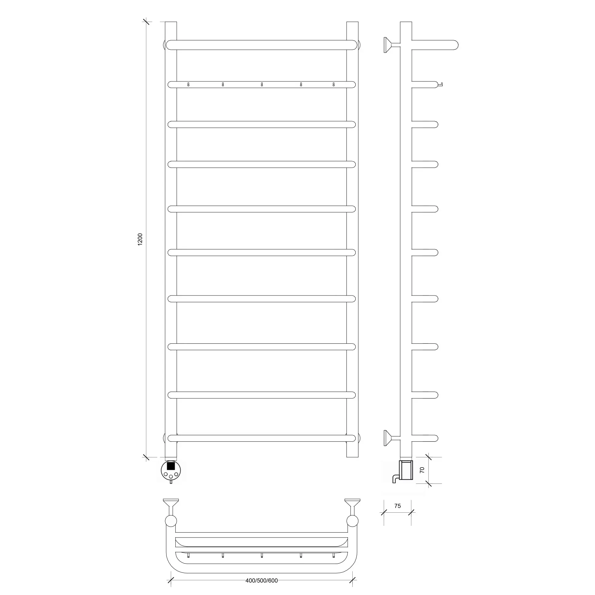 Полотенцесушитель Secado Мерида 1 КСП , с крючками и полочкой, электрический L/R хром