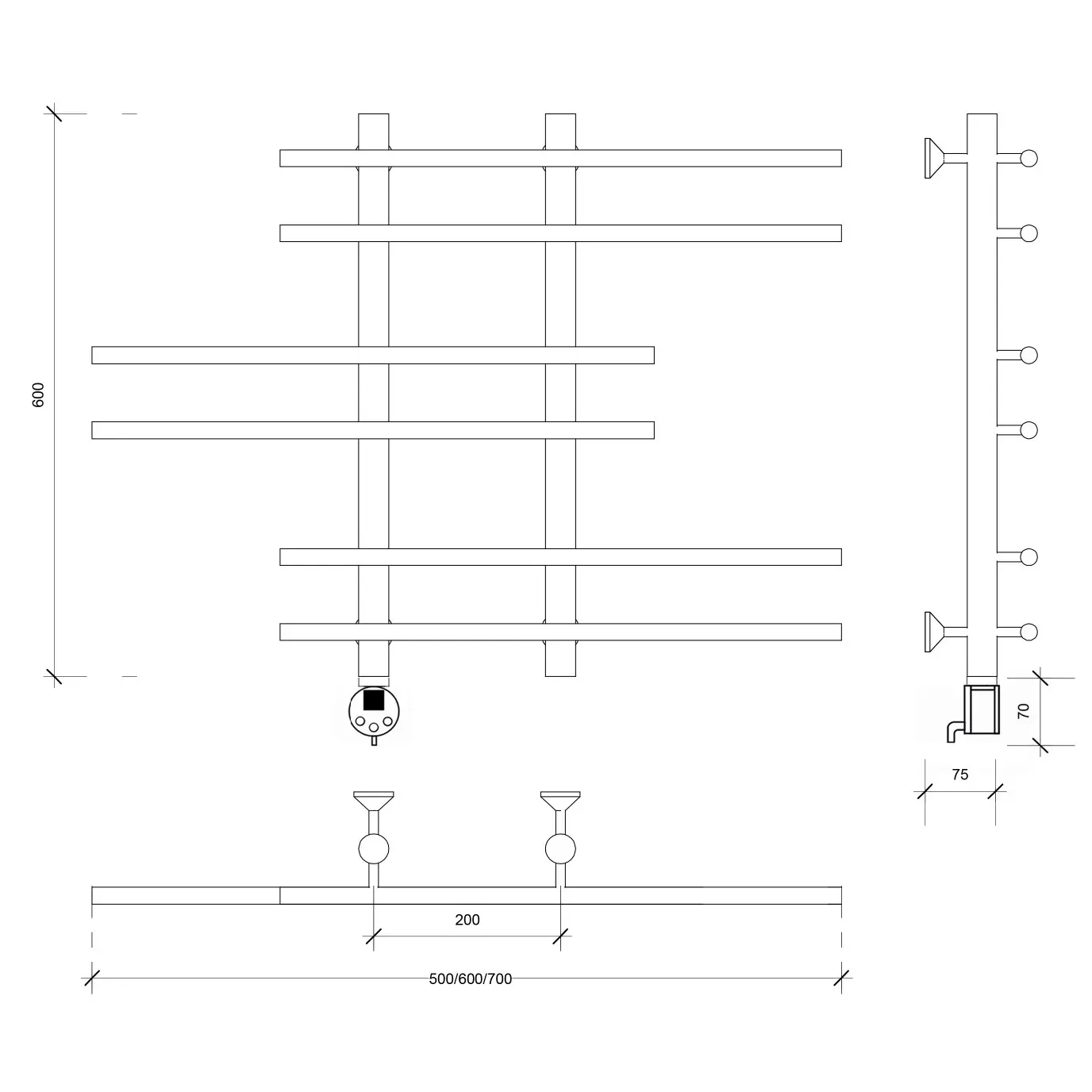 Полотенцесушитель Secado Турин 5  электрический L/R хром
