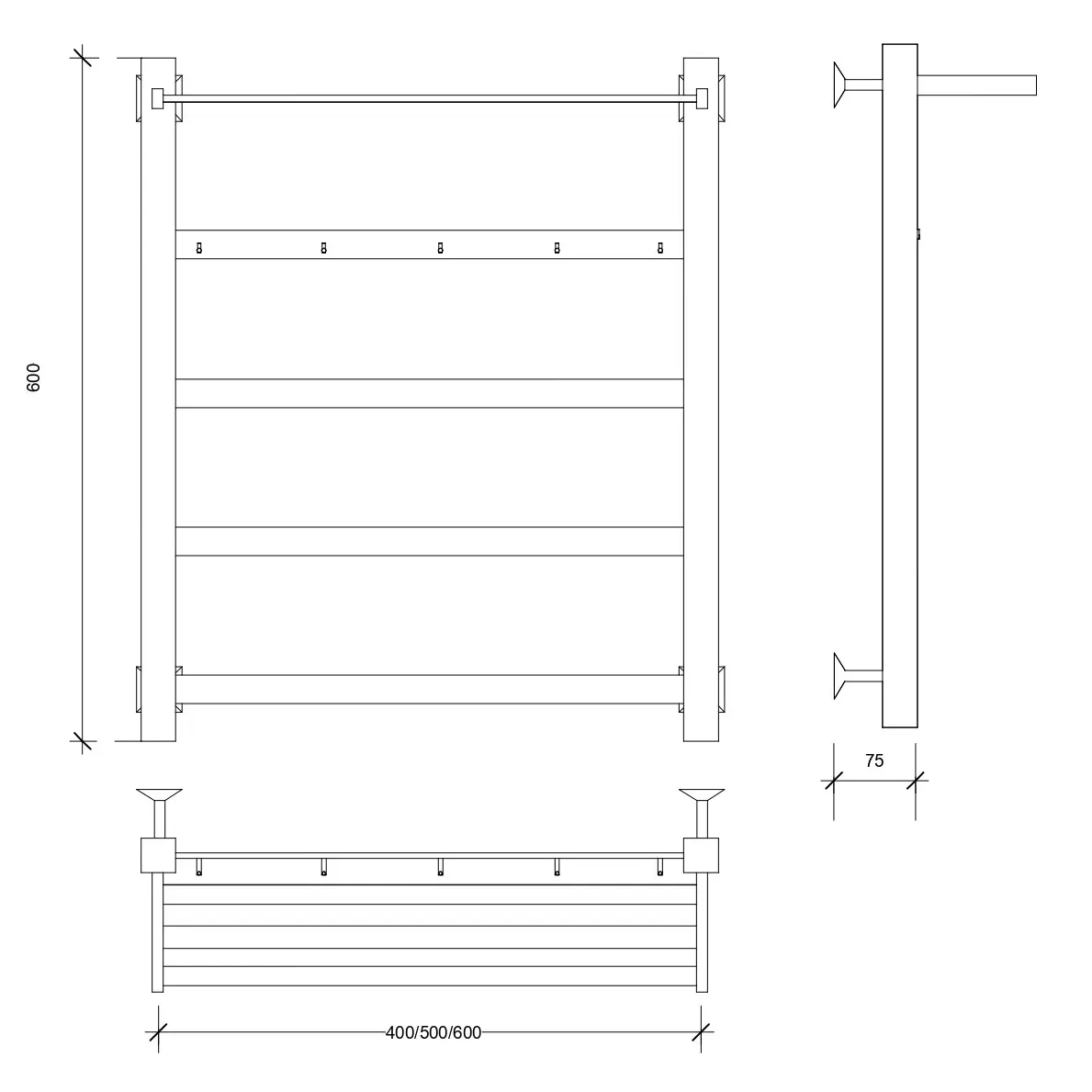 Полотенцесушитель Secado Корсико 1 КСП, с крючками и полочкой, водяной, ЧЕРНЫЙ МАТОВЫЙ