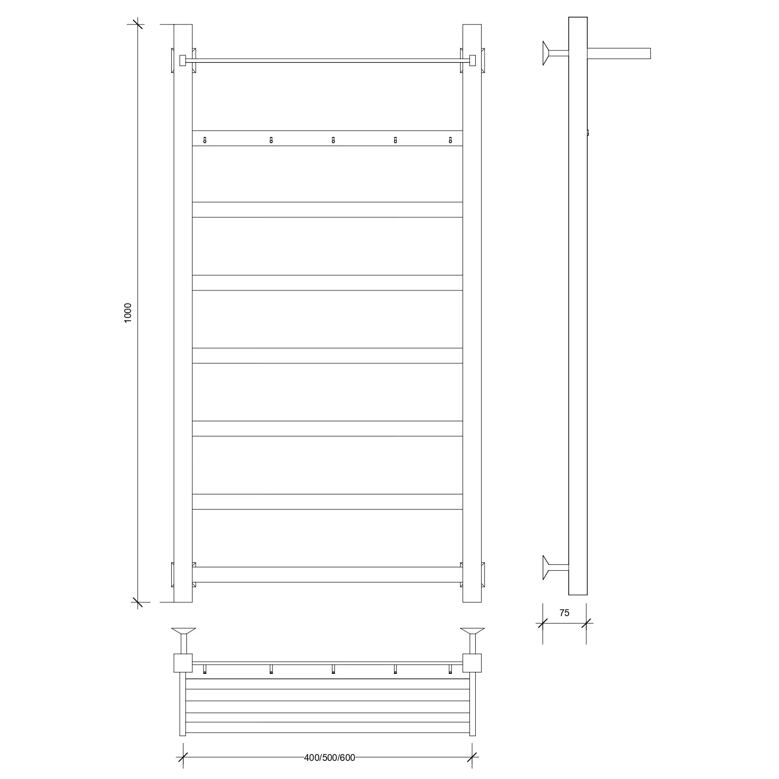 Полотенцесушитель Secado Корсико 1 КСП, с крючками и полочкой, водяной, ЧЕРНЫЙ МАТОВЫЙ
