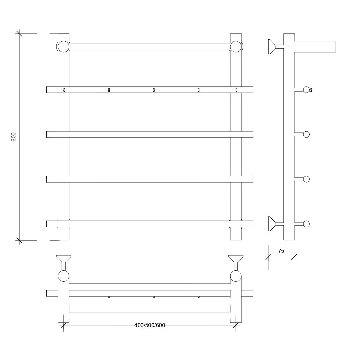 Полотенцесушитель Secado Турин 1 КСП, с крючками и полочкой, водяной, хром