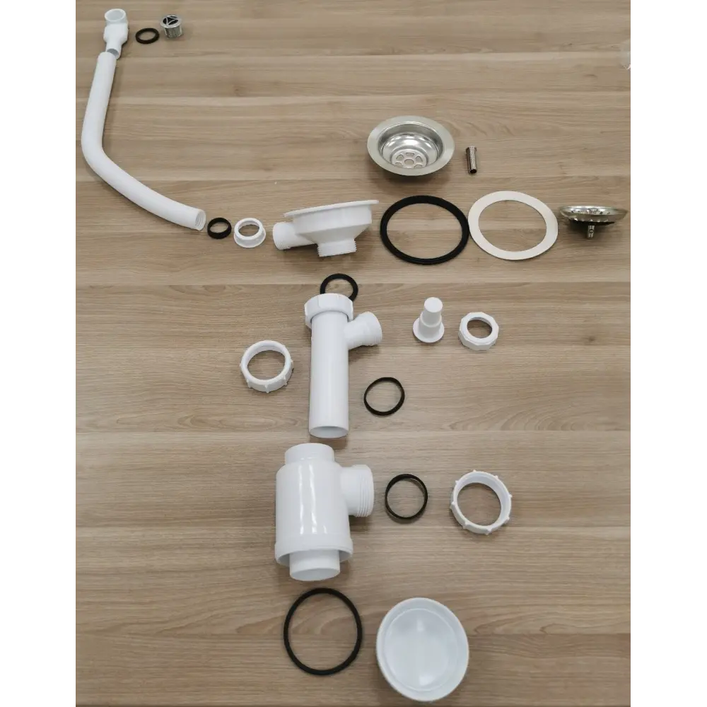 выпуск с переливом, сифон бутылочный, крепёж и шаблон