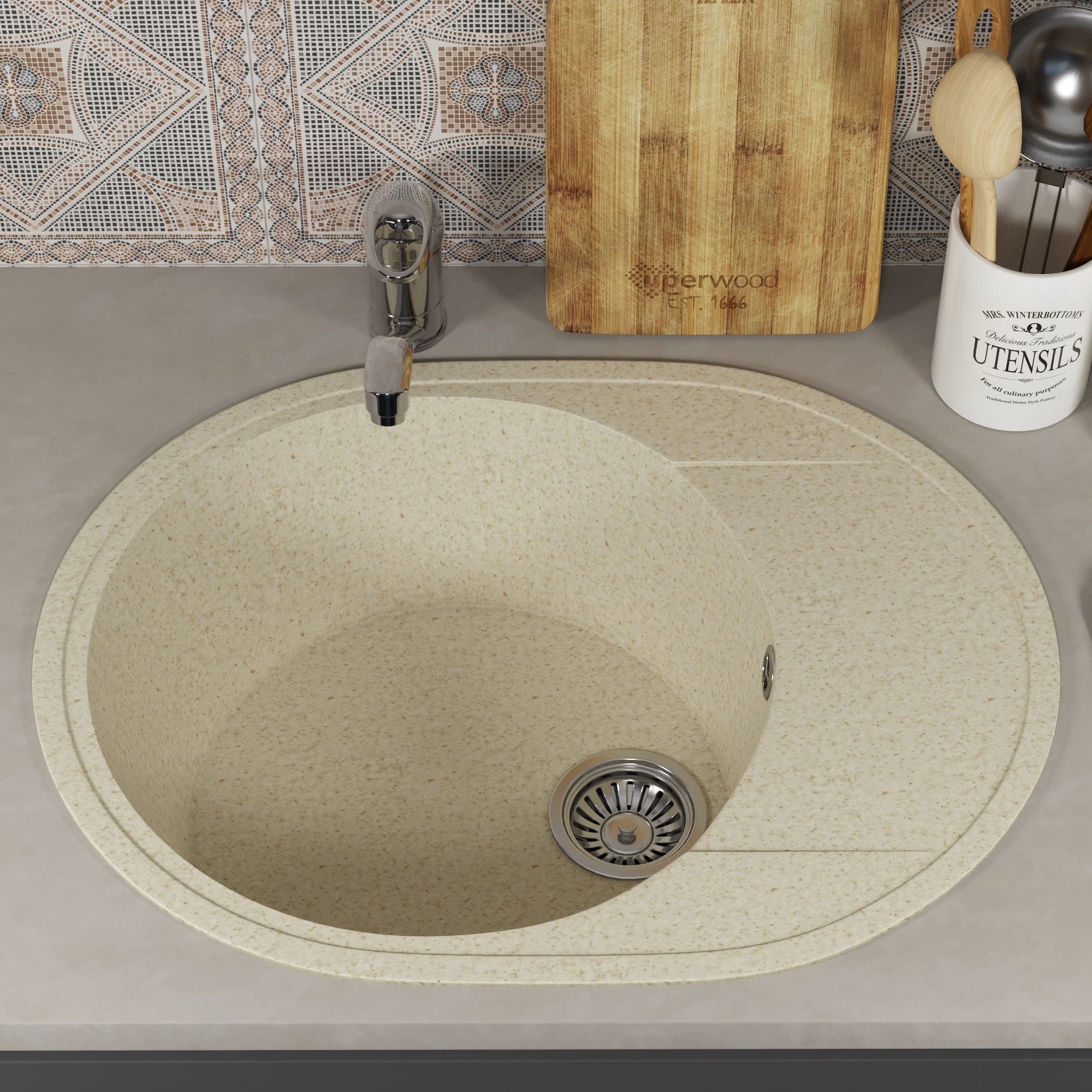 Кухонная мойка из искусственного камня Uperwood ECON UPD-107-002, овальная, бежевая матовая