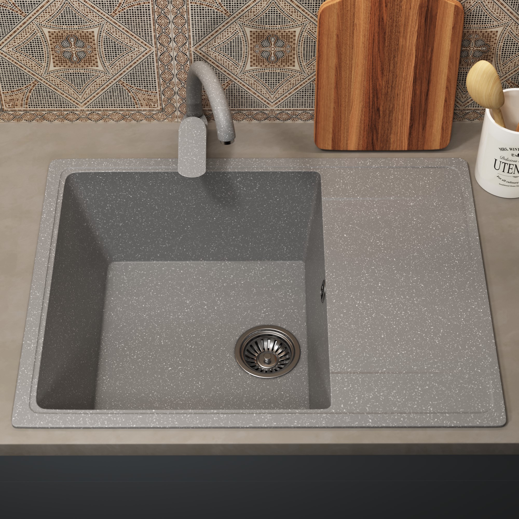 Уникальная фактура камня смотрится благородно, вписывается в любой интерьер и делает его утонченным. Мойка гладкая и приятная на ощупь, матовое покрытие. При эксплуатации не издает неприятного шума и грохота. На выбор покупателя предлагается 4 стандартных цвета для каждой модели мойки: белый, серый, бежевый и черный.