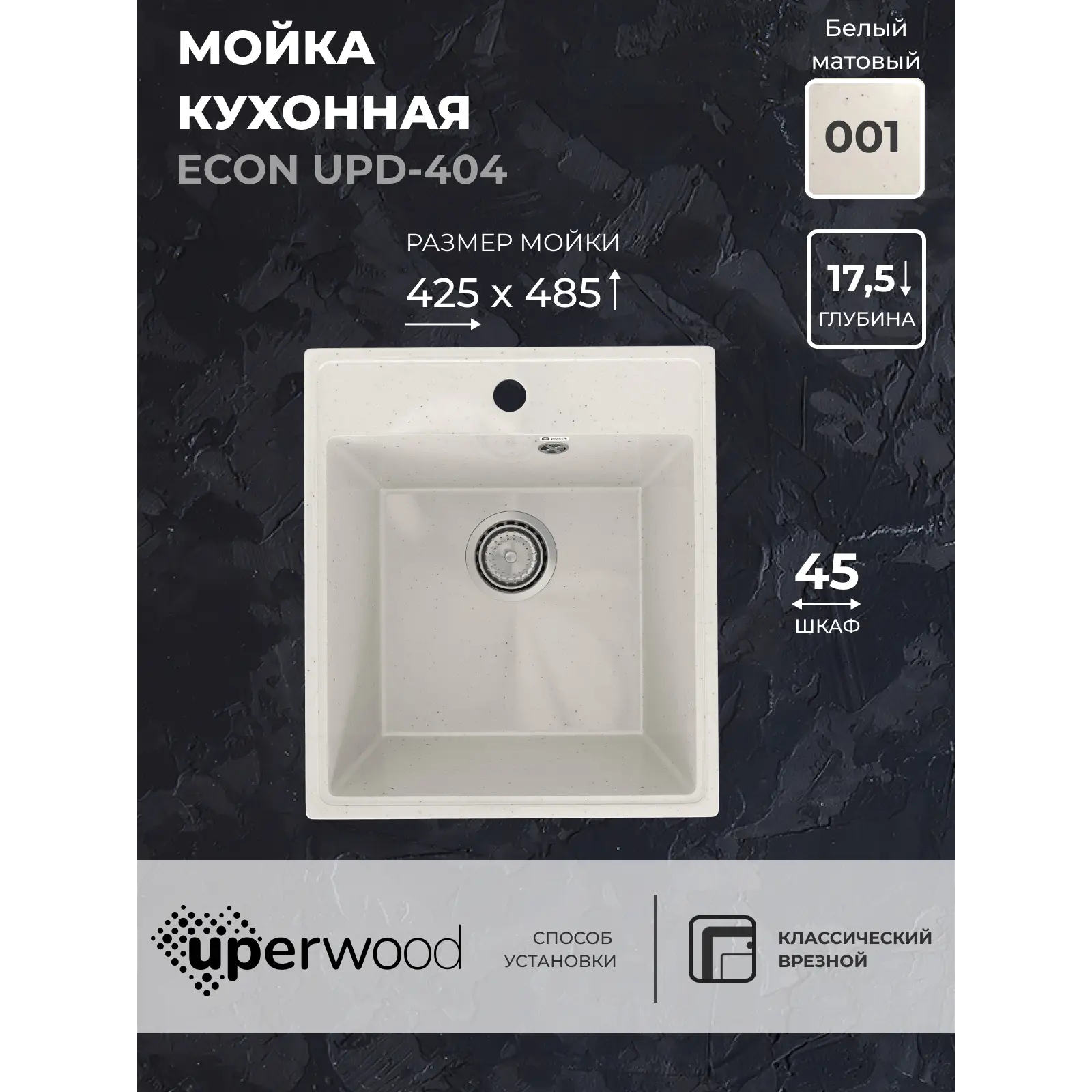 Кухонная мойка из искусственного камня Uperwood ECON UPD-404-001, прямоугольная, белая матовая