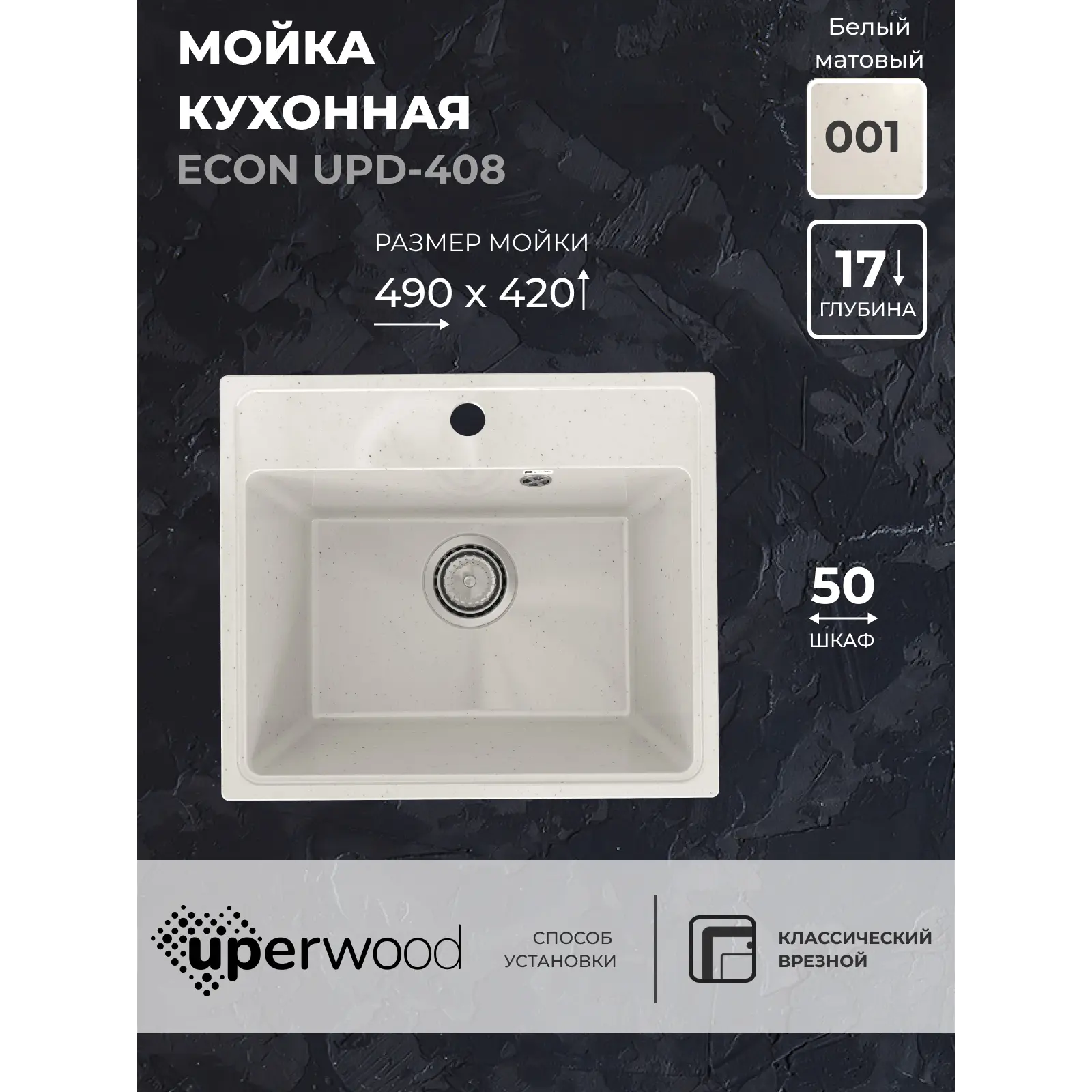 Кухонная мойка из искусственного камня Uperwood ECON UPD-408-001, прямоугольная, белая матовая