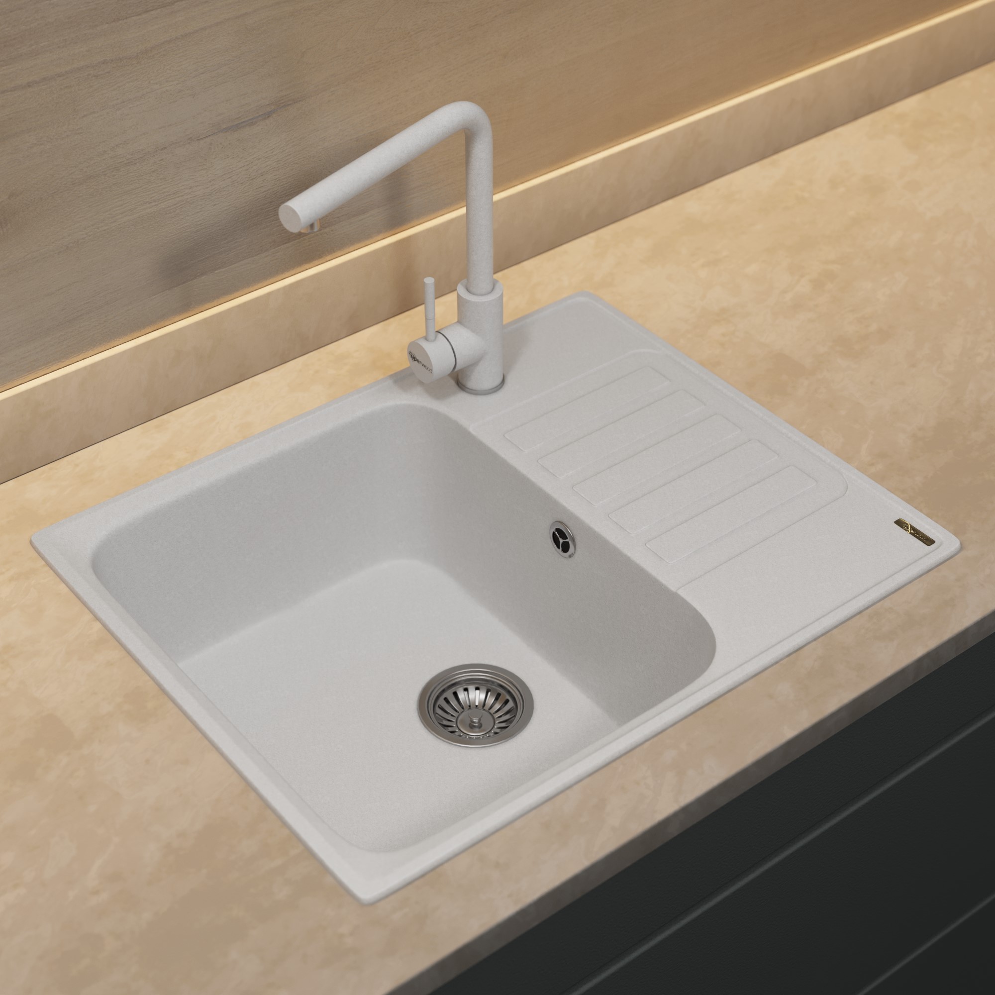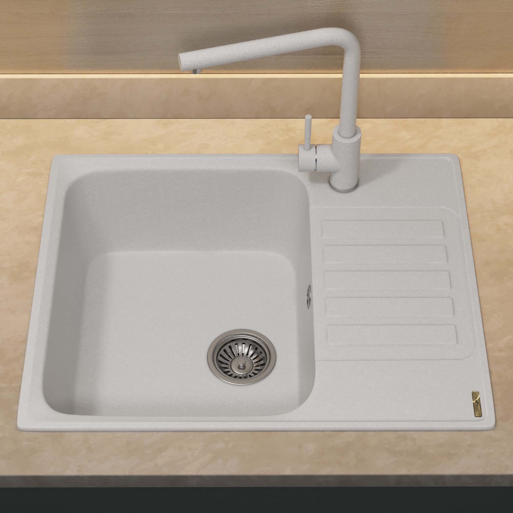 Кухонная мойка из искусственного камня Uperwood UPD-202, прямоугольная, цвет туман