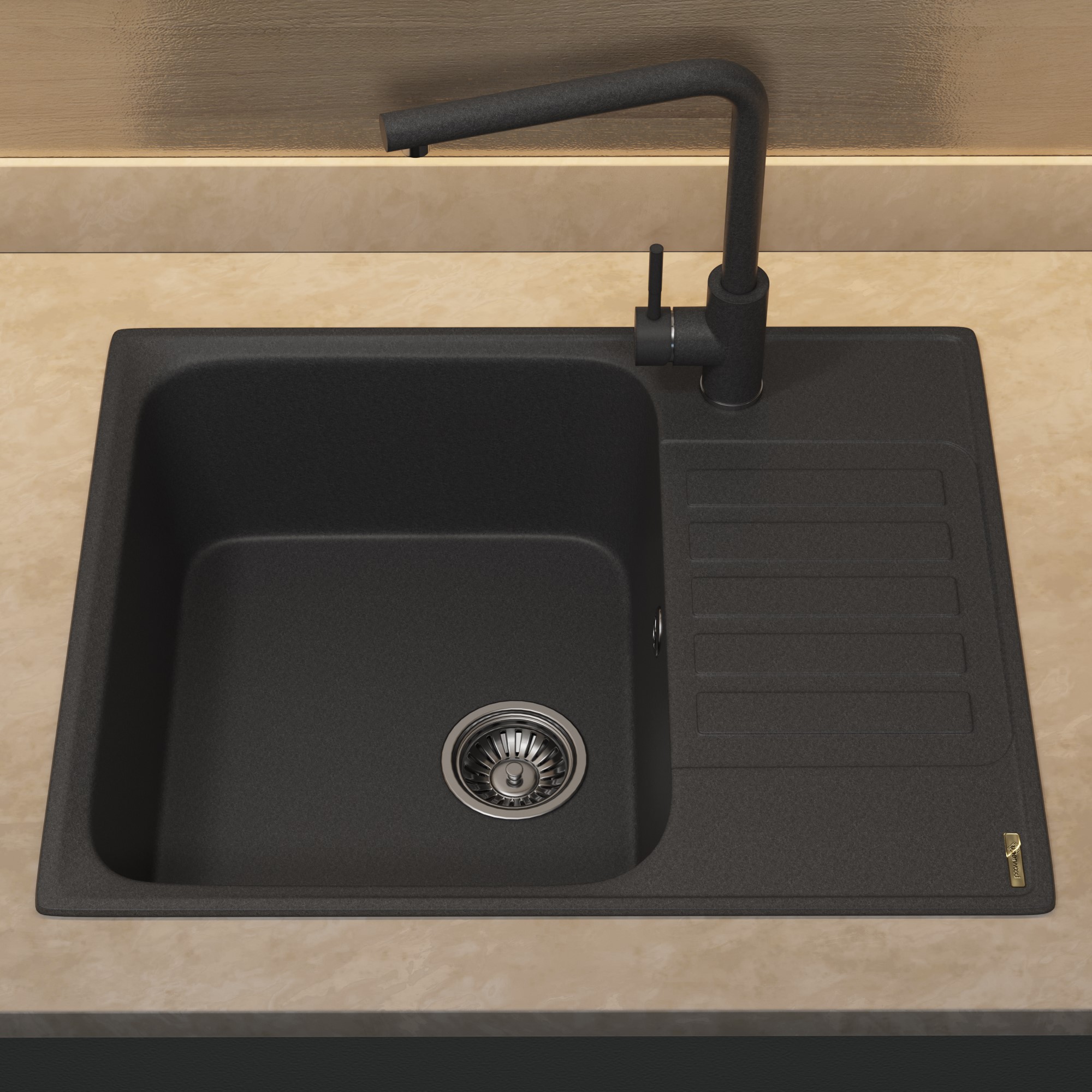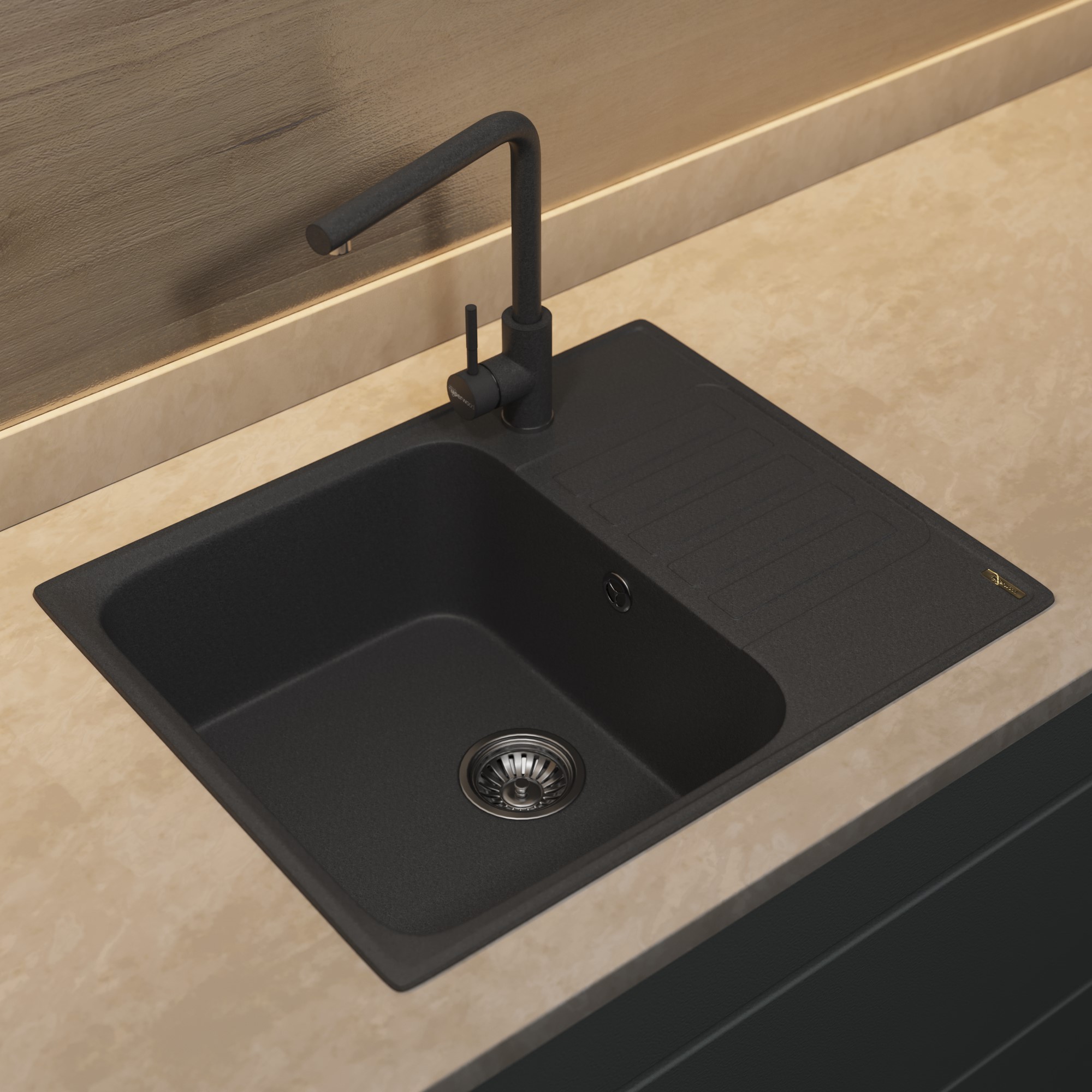 Кухонная мойка из искусственного камня Uperwood UPD-202, прямоугольная, цвет уголь