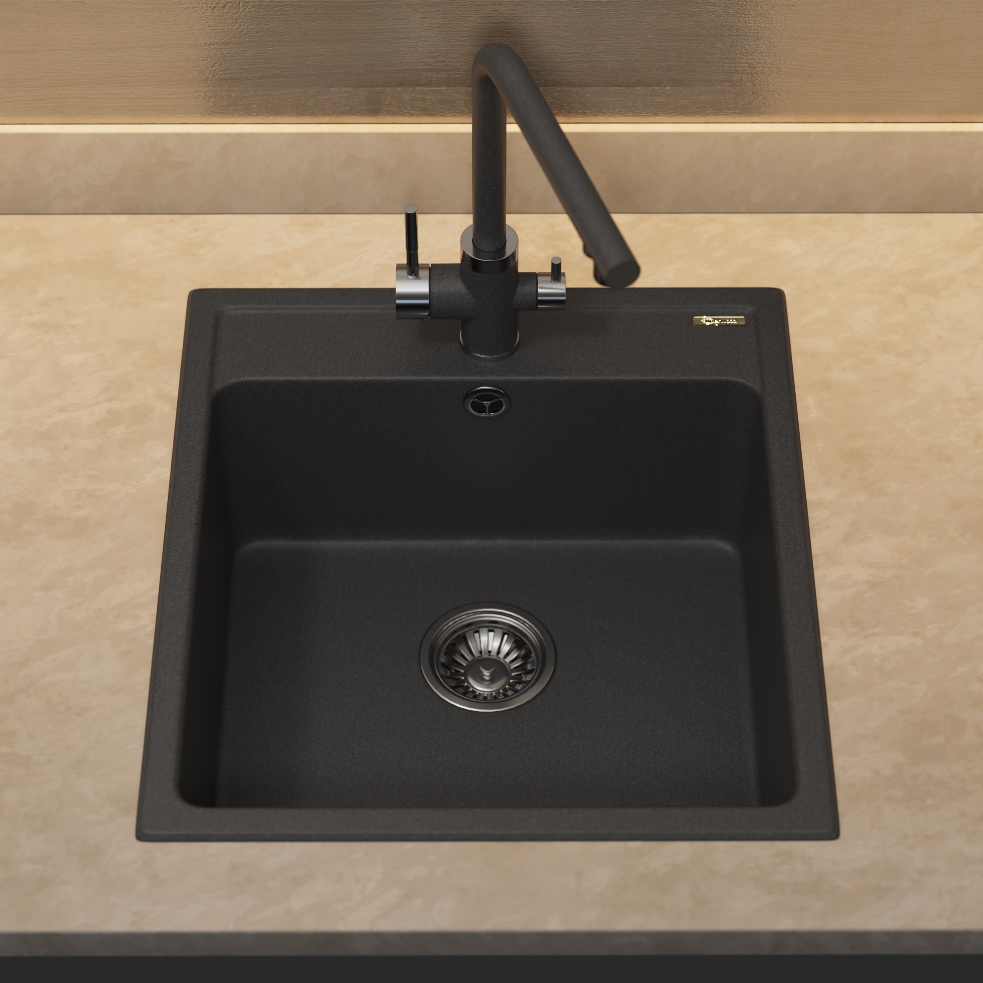 Кухонная мойка из искусственного камня Uperwood UPD-406, 42х48 прямоугольная, цвет уголь