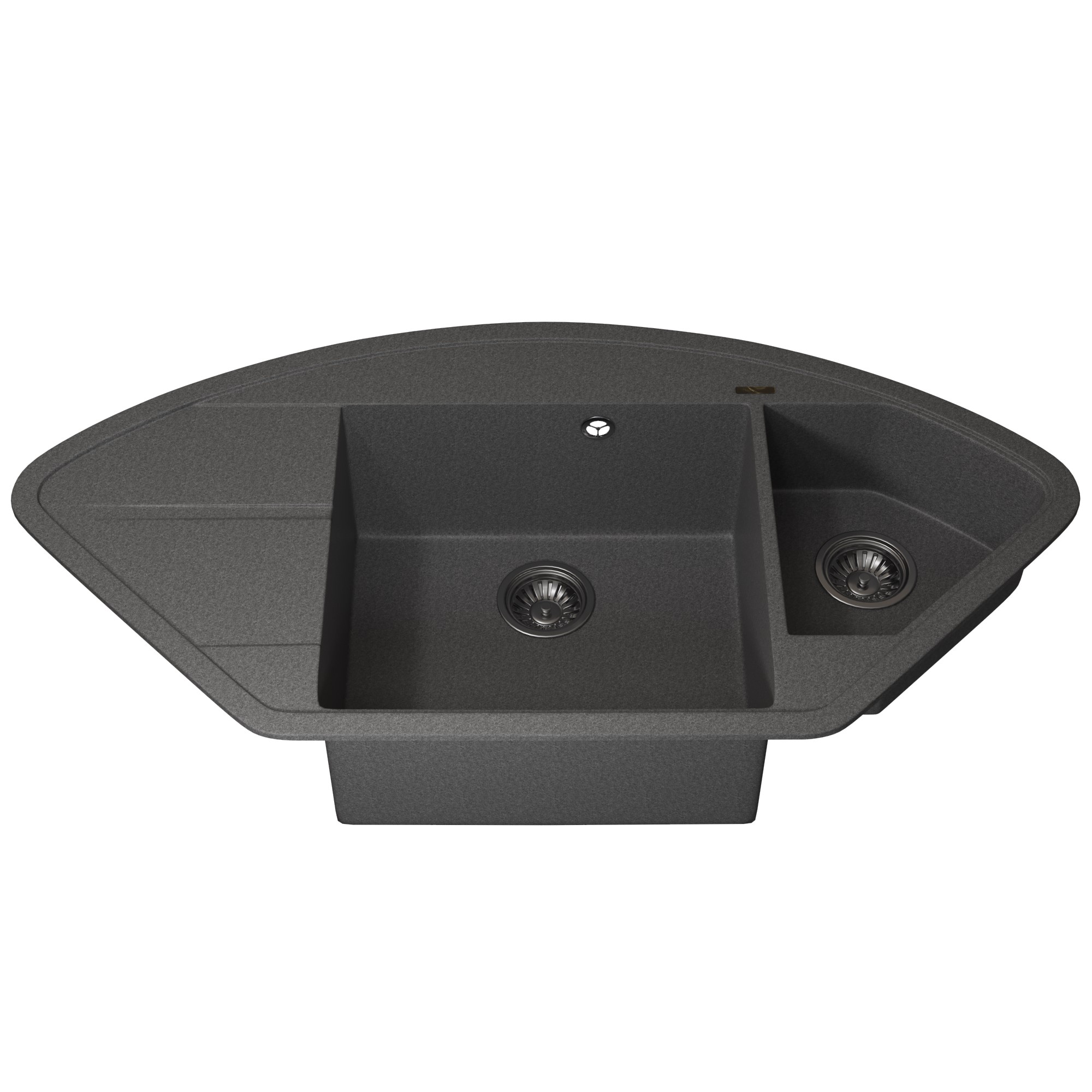 Кухонная мойка кварцевая Uperwood Quartz Premium UPD-06-03, угловая двухсекционная, серая