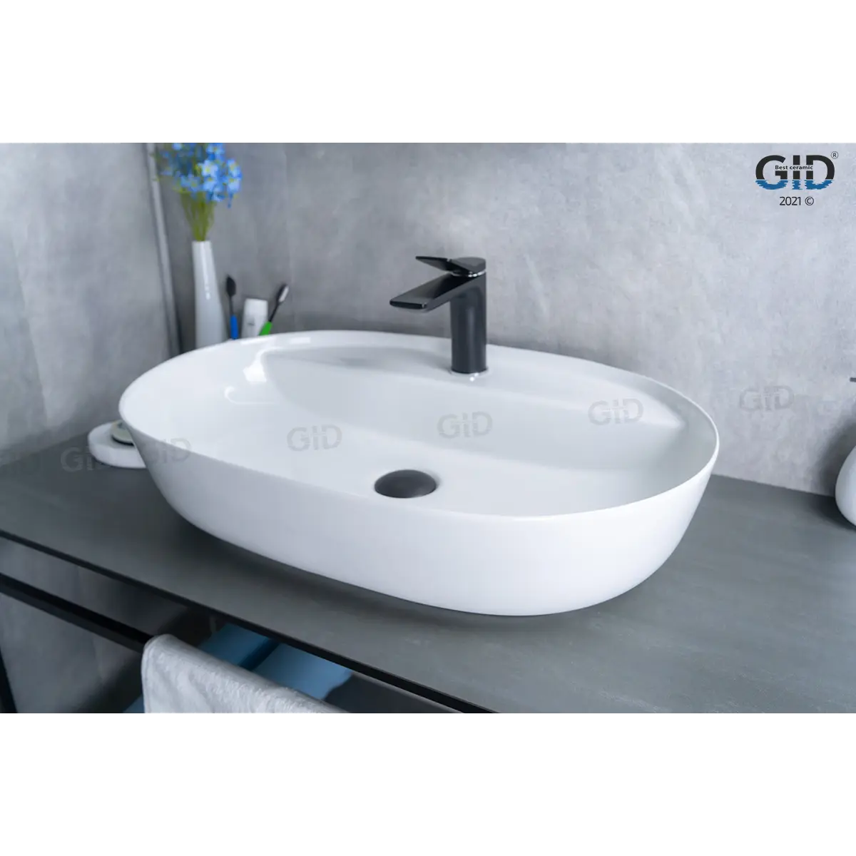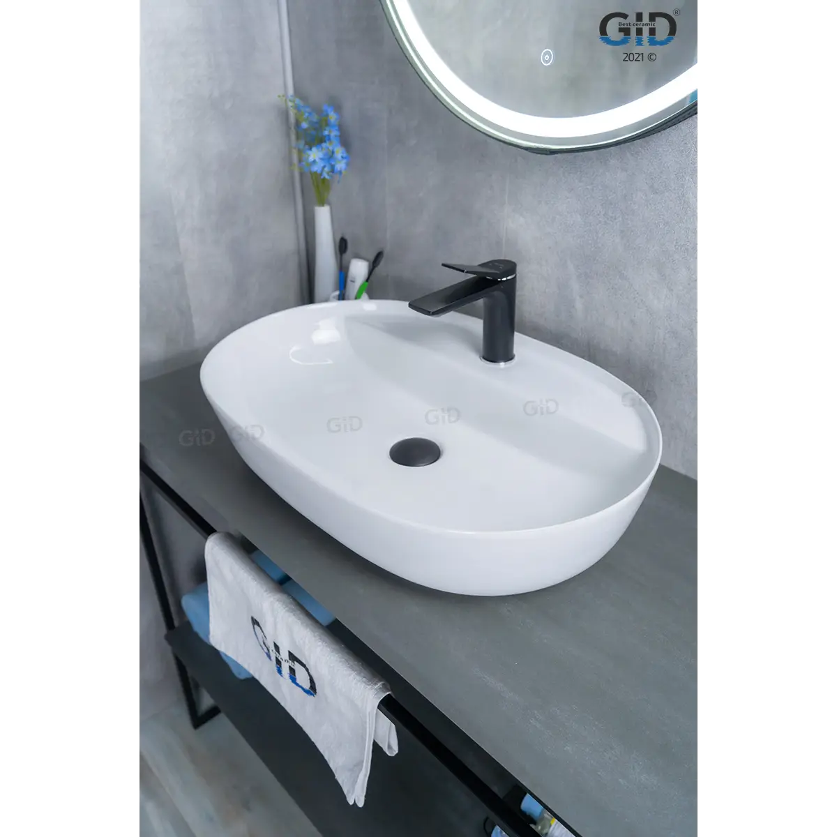 Конструкция керамической раковины накладной Gid D1346 обеспечивает простую и долговечную эксплуатацию.
